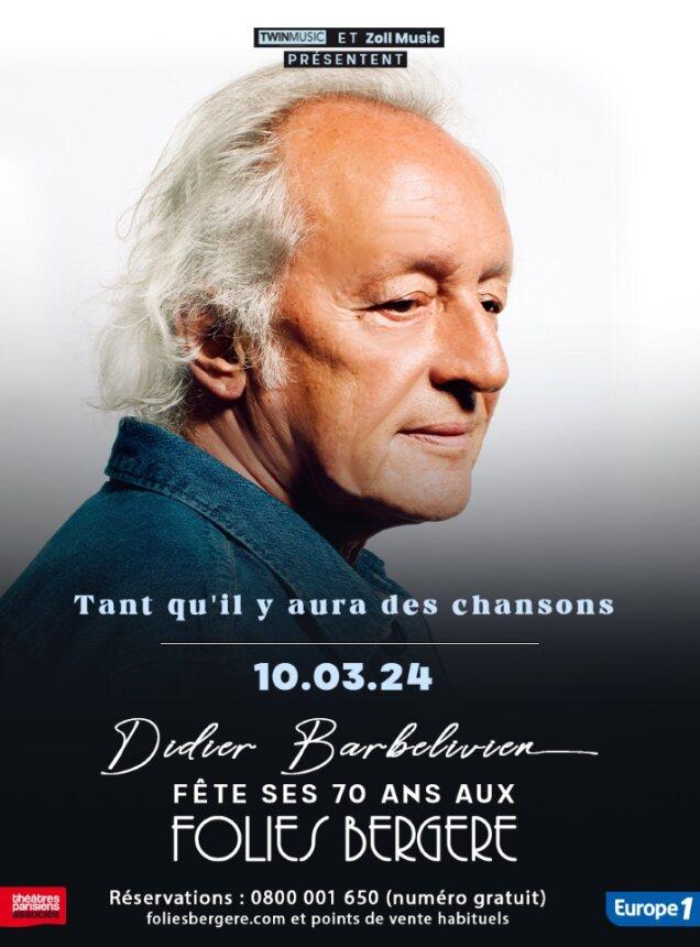 Le 10 mars 2024, Didier Barbelivien fête ses 70 ans aux Folies Bergère. Ne manquez pas ce rendez-vous unique !