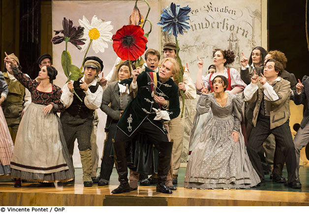 Beau décor, ingénieusement agencé avec ses agrandissements "gullivériens": beaux costumes très variés et très colorés; tout cela dans le plus pur style Bidermaier. Bonne idée d'avoir repris décors et costumes de , je crois, Glyndebourne (vu sur Mezzo il y a quelques mois); Jordan impressionnant, distribution homogène malgré l'absence de Gerald Finley superbement replacé par ???. Choeur impressionnant. Je ne regrette pas ma soirée passée au 5e rang du parterre...C'était, dans ma longue assiduité (50 ans) à toutes sortes d'opéras et de maisons d'opéras en Europe et aux Etats-Unis, la première fois que j'étais si près du chef, et par conséquent au coeur même de la musique et de l'action dramatique. Je peux ajouter que, parmi la bonne douzaine de fois que j'ai assisté aux Maîtres à Vienne, Munich, Berlin-Ouest, Berlin-Est, Francfort, Zurich, Genève, New York, Paris (19??), cette version "parisienne" est l'une des meilleurs; mais, parfois, j'ai eu le privilège d'entendre de bien plus grands chanteurs, allemands la plupart du temps; mais bravo pour cette distribution-là et pour cette astucieuse mise en scène, et pour l'hommage rendu à Beethoven, Goethe et ... Wagner lui-même!. Merci! Louis-Daniel Perret, Lutry près Lausanne.