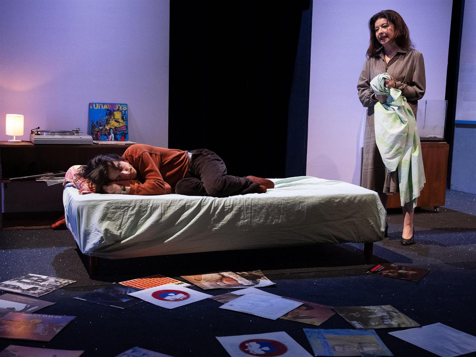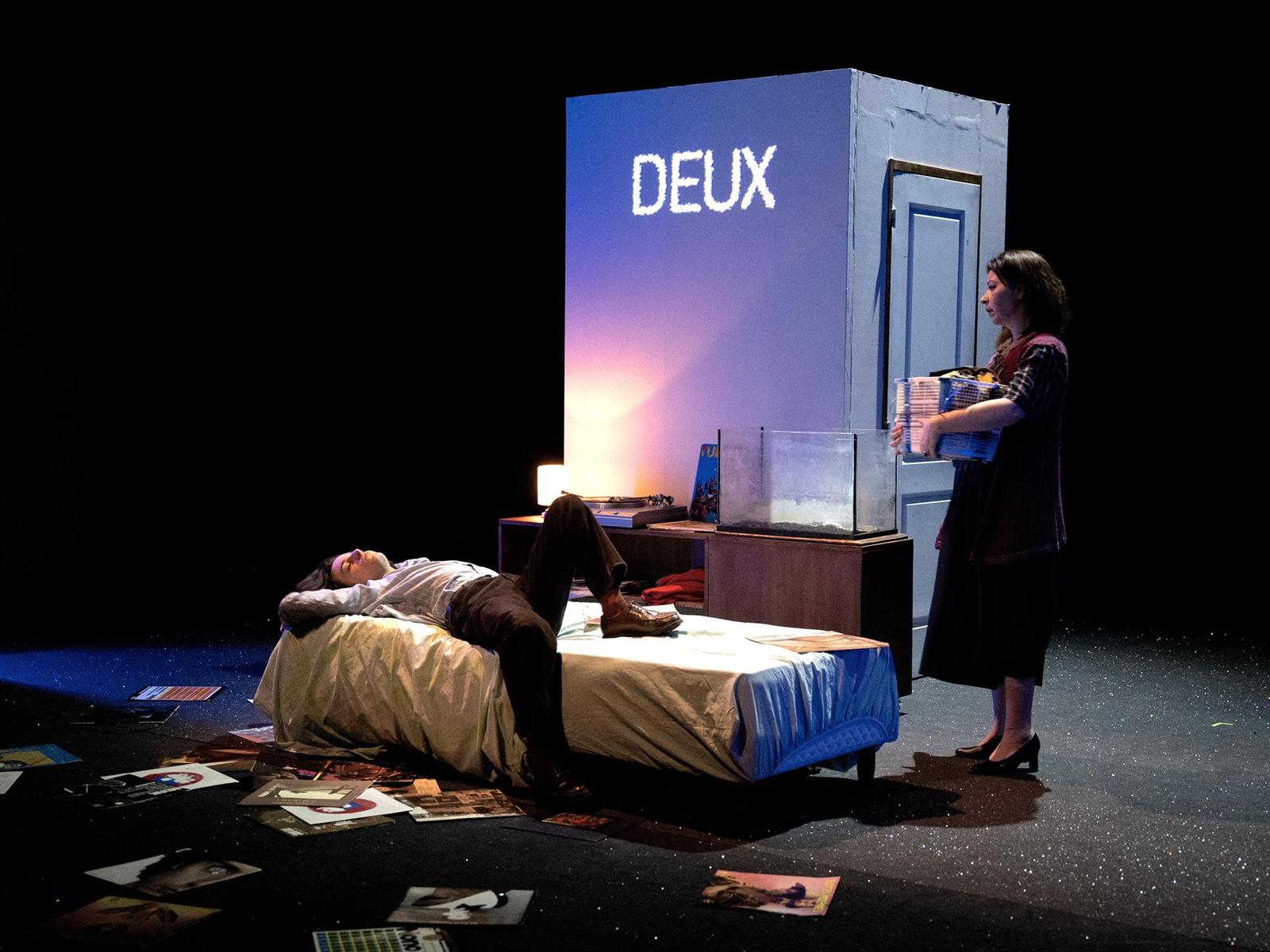 « À travers douze fragments, Michel Vinaver tisse la relation ambiguë d’une mère et d’un fils aux prises, dans la France de la fin des années 1970, à de multiples transformations politiques et sociales qui viennent influer leurs propres bouleversements intimes. Concepteur d’un geste de mise en scène prometteur, Hugo Givort a bien compris qu’aucune tirade, qu’aucun mot n’était laissé au hasard par Vinaver dans cette histoire d’émancipation filiale. » Vincent Bouquet Télérama TT