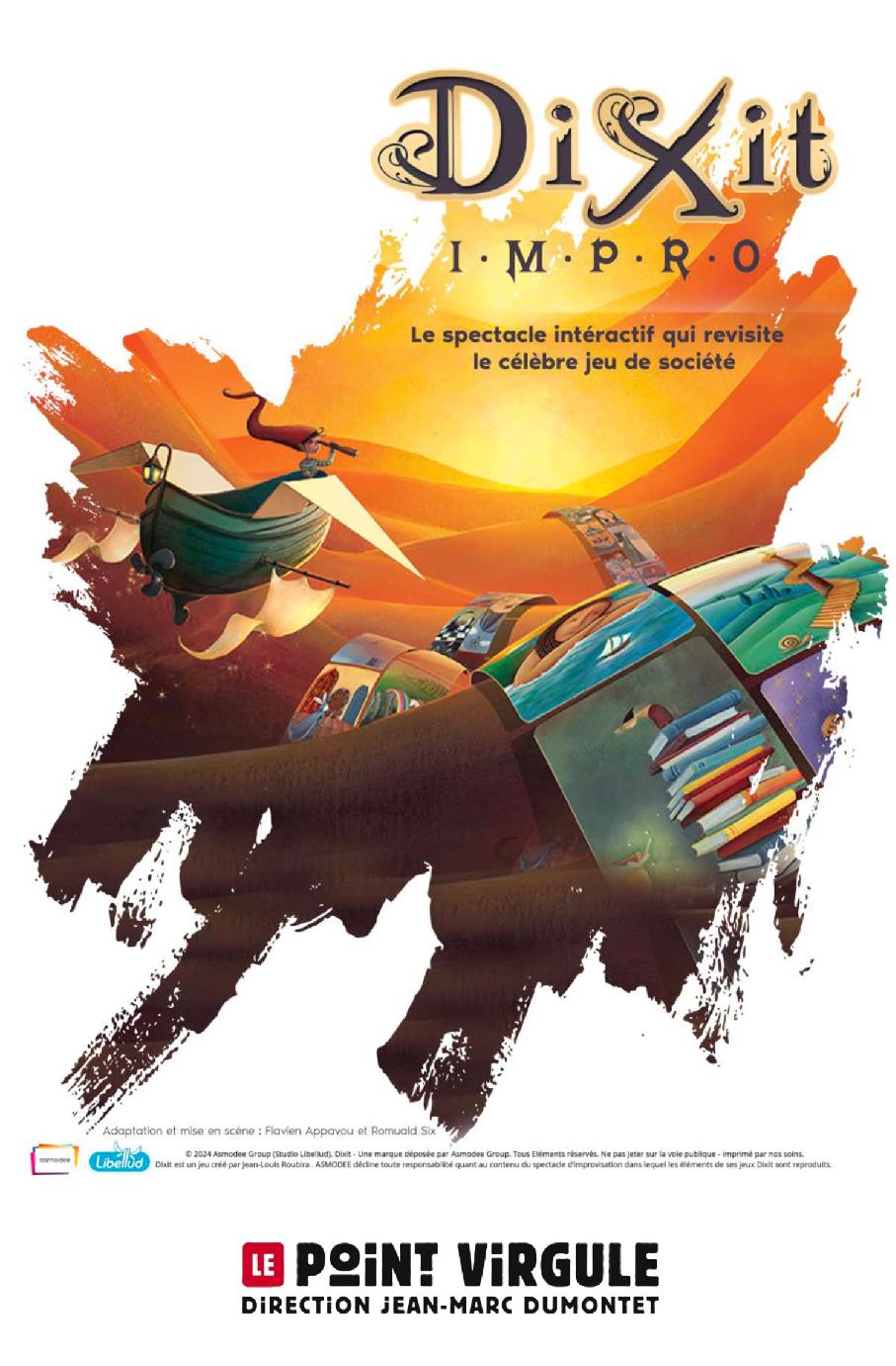 Tu connais le jeu ? Viens voir le spectacle ! Un spectacle d'impro à la fois drôle et poétique, dans lequel le public joue contre les comédiens. Les cartes du jeu de société DIXIT prennent vie !