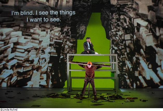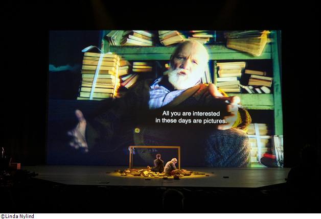 Sans didactisme ni morale, la troupe de dix-sept acteurs, danseurs et chanteurs donne vie aux quelques vingt chapitres de cette grande épopée politique et policière par un jeu physique, brut et enlevé. Accompagnés par la musique traditionnelle d’Europe de l’Est revisitée du duo Balaklava Blues, ils incarnent d’abord des villageois, des élèves d’une école et leur professeur, la police, un idéologue en chef, un résistant ou encore une espionne dans un petit village du Nouveau Reich ; puis un détective, un poète disparu, des libraires et un homme mystérieux au cours d’un périple dans plusieurs capitales de la Ligue des États européens. Derrière eux, un immense écran sert de décor, montre de fausses images d’archives et ponctue les moments poétiques par des projections plastiques.