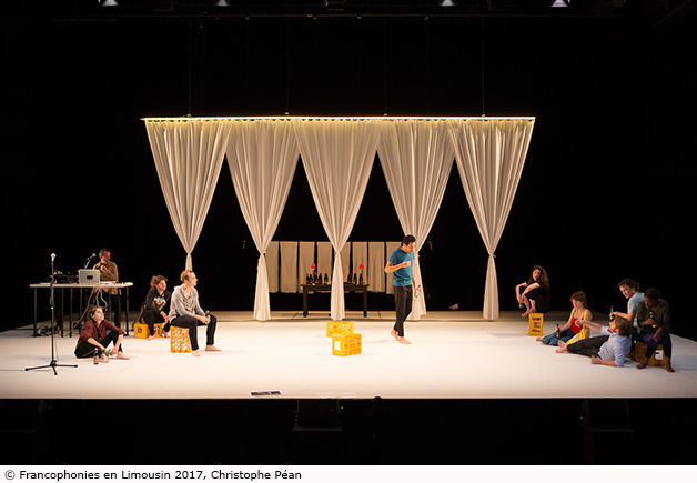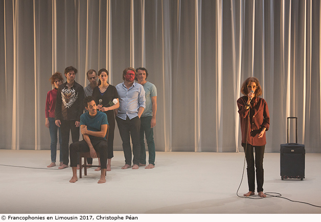 Onze interprètes entrecroisent leurs histoires et nous invitent à une fête. On y parle de la vie qui va, des vicissitudes de l’amour et de l’indécision. On y fait des rêves américains et des retours au pays natal, on s’engueule sur les révolutions ratées, les révoltes assoupies, et on danse sur les cendres de mai 68. On repense à ses parents, aux odeurs de l’enfance, on est nostalgique de quelque chose qu’on est pas sûr d‘avoir vécu, on divague, on se déchire, on s’embrasse, on se quitte et on tente de se consoler, on meurt sous les tirs et on parle, on parle beaucoup pour se donner du baume au coeur. On vit.