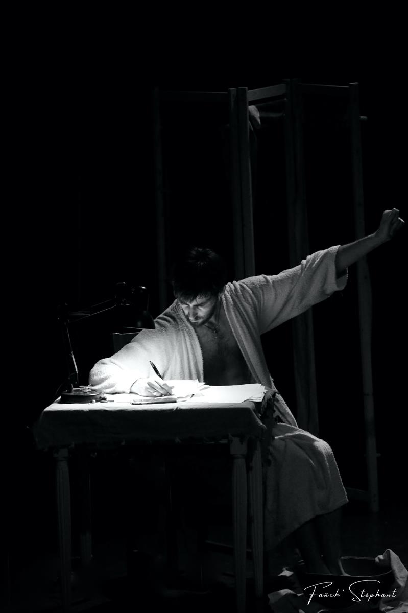 Cette pièce est très particulière et il m'a fallu un peu de temps pour m'immerger dans son atmosphère. Un jeune écrivain est hanté par son écriture au point que ses différentes personnalités ainsi que ses amitiés féminines font irruption dans sa vie et s'imposent à lui. Interprétation "habitée" par le jeune comédien et belle présence de sa partenaire.