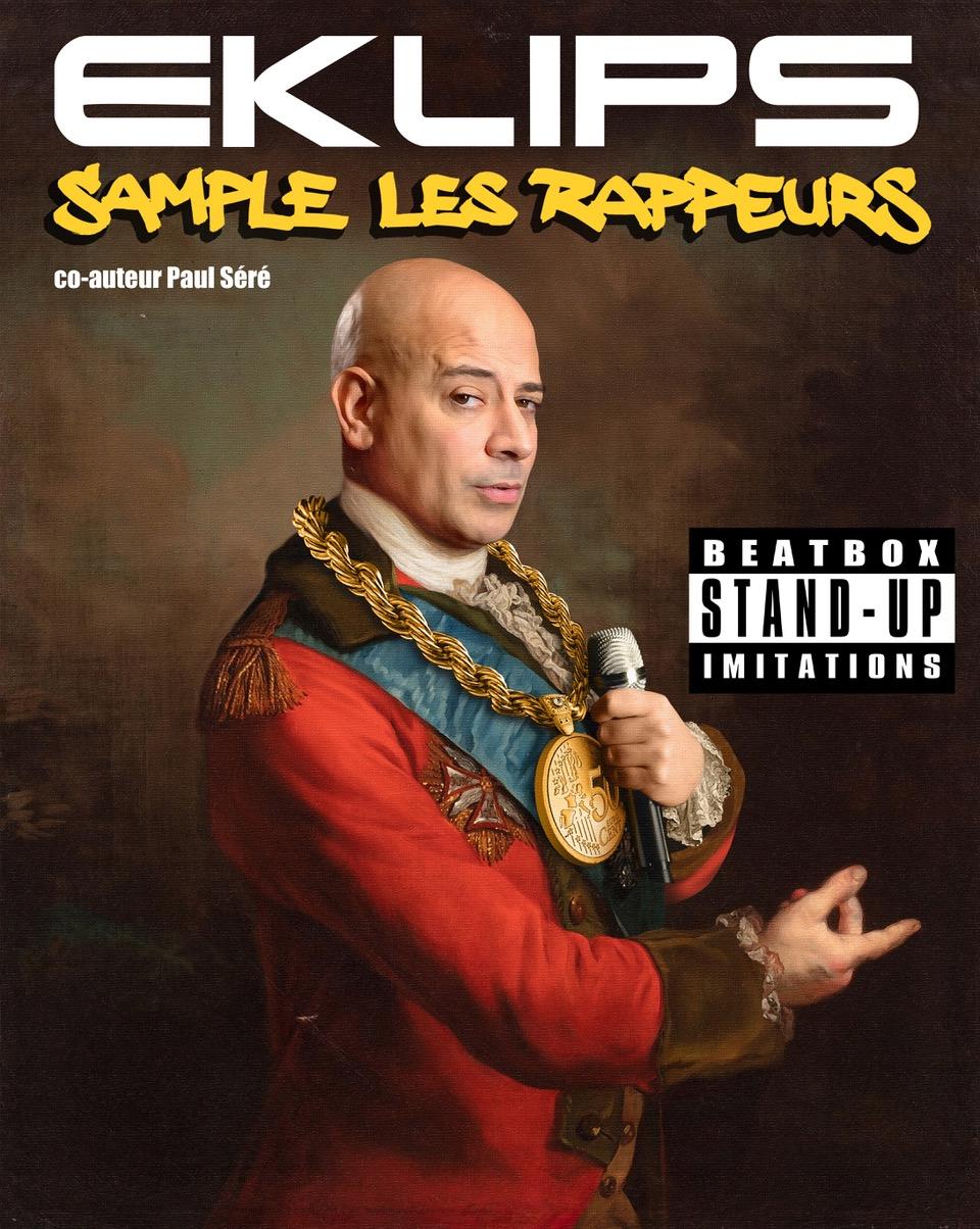 Véritable boîte à rythmes humaine ambulante, Eklips incarne avec brio les plus grand rappeurs français et américains. Il se lance aujourd'hui dans un one man chauve hilarant et ludique, sur la musique la plus écoutée : Le Rap !