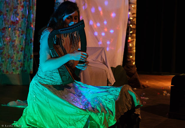 Elora vit dans la forêt avec pour seuls compagnons les oiseaux et sa harpe. Un jour, elle entend une étrange musique... Quelques fées et palais enchanté plus tard, elle se retrouve victime d'un sort qui va l'aider à se retrouver... Elora est une jeune paysanne. Elle habite seule dans la forêt. Oh elle n'a pas toujours été seule ! Elle avait un ami autrefois mais il n'est plus là et ça, seuls les oiseaux savent pourquoi... Une nuit de décembre, alors que fées et lutins s'apprêtent à célébrer le solstice d'hiver, le jour le plus court de l'année, Elora entend résonner une harpe qui la mènera dans de drôles d'aventures à en perdre la voix ! Mais qui la guideront surtout sur le chemin du véritable bonheur...