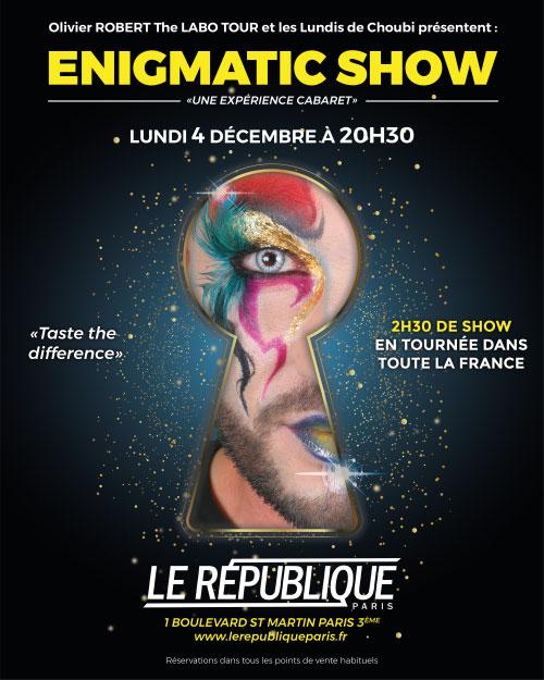 Enigmatic Show vous invite à une soirée chic et excentrique, dévoilant des artistes internationaux aux talents incommensurables sous la direction artistique de Christophe Michaux, dont tout Paris parle avec son spectacle : Les Lundis de Choubi à The LABO PARIS.