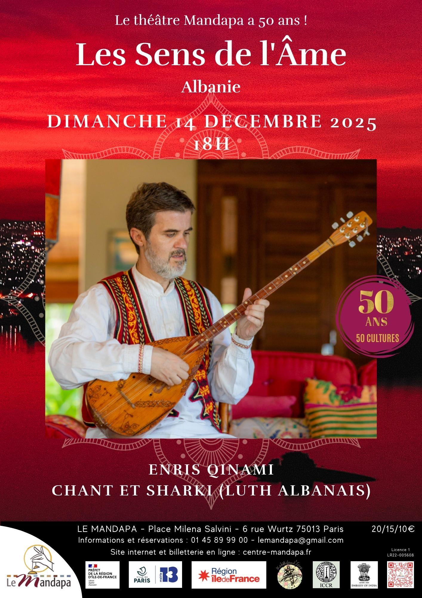 Musicien, poète, parfumeur et ethnomusicologue, Enris Qinami s'accompagne du luth à cordes pincées (sharki). La musique qu’il interprète prend son souffle dans une langue singulière qu’est l’albanais, tout en faisant place aux langues des pays voisins qui nous offrent la richesse de leurs sonorités dans un écrin précieux faisant honneur à l'altérité.