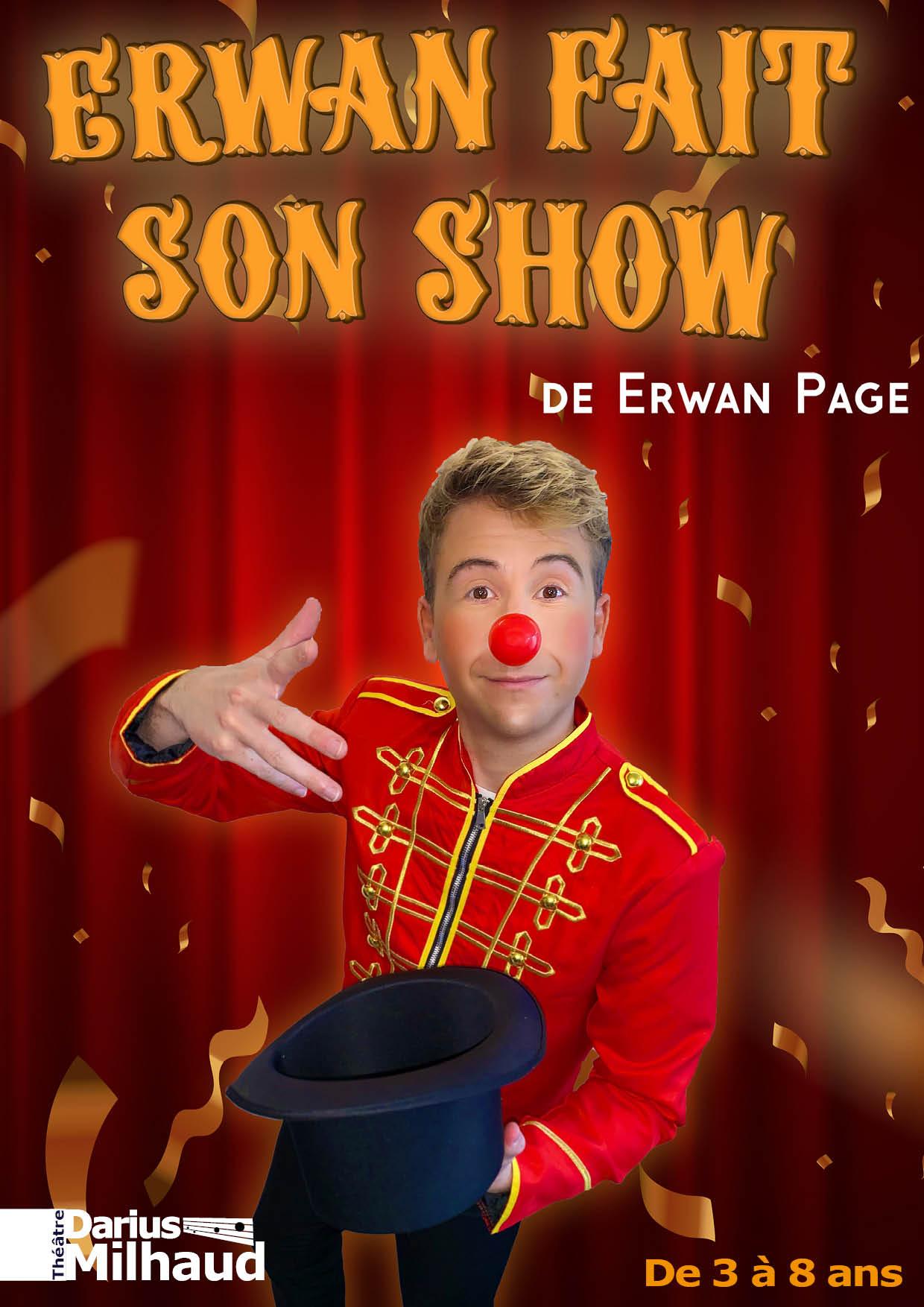 Le public est installé, la musique démarre, les lumières illuminent la scène et le clown Erwan entre en piste, seul… puisque la troupe manque à l’appel. Alors que faire ? Annuler la représentation ? Faire le spectacle seul ? Le maître de la piste, prêt à tout pour sauver la représentation aura bien du fils à retordre avec ce spectacle qui s’annonce légèrement chaotique. Et si avec un peu d’entraide et la solidarité du public, il était possible de produire le spectacle ? Parmi les bambins dans la salle se cache peut-être le nouvel Achille Zavatta. Votre enfant a-t-il un incroyable talent ?