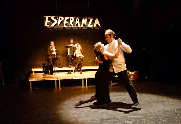 « Approchez Mesdames et Messieurs » auraient pu dire les saltimbanques, comédiens, musiciens, danseurs qui s’enviennent sur scène, ou plus exactement sur le pont, pour jouer cette farce, cabaret tragique et grotesque, à bord du paquebot Espéranza.