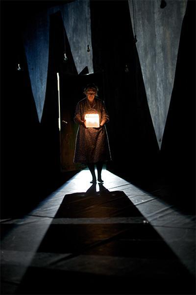Il était une fois une vaste forêt de sapins noirs. Au centre de la forêt, une petite maison. Dehors le loup rôde. Dedans elle se souvient, avec sa voix d’enfant fragile et son corps de grand-mère, égrenant ses souvenirs tel un Petit Chaperon rouge qui aurait vieilli. À ses côtés, un drôle de personnage : un serviteur muet qui manigance, épie et qui, à ses heures perdues, se fait passer pour un lapin. Dans cette maison qui devient le théâtre de nos peurs et le terrain d’une histoire criminelle, finalement, qui a mangé qui ?