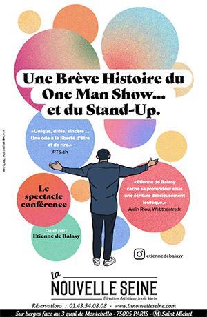 Du rire des hommes cavernes au premier Comedy Club en passant par les techniques d’écriture et le fameux « peut on rire de tout ? » Etienne de Balasy vous convie à une ballade au travers d’une brève (très brève) histoire de celles et ceux qui ont fabriqué cet art que sont le One Man Show et le Stand-Up.