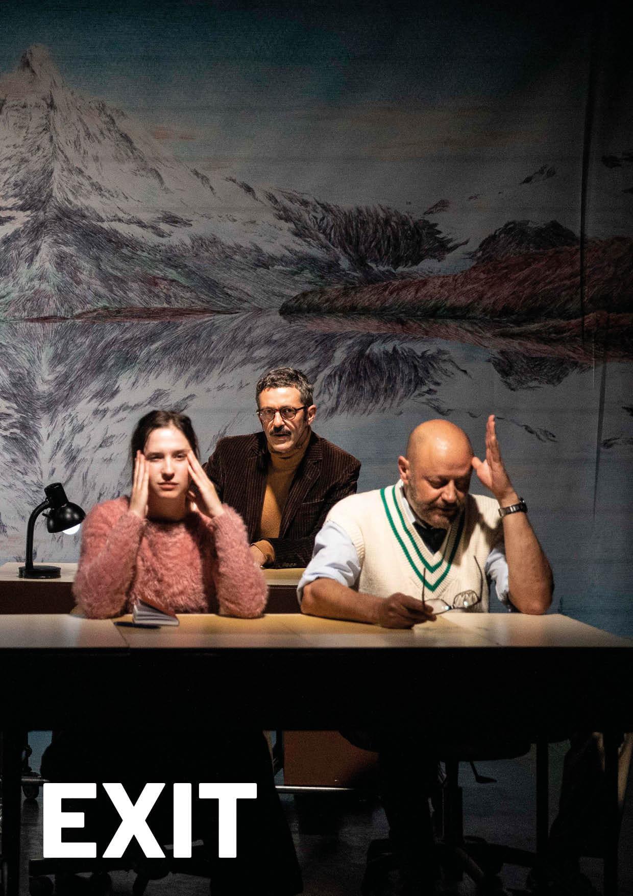 À partir du documentaire du cinéaste lausannois Fernand Melgar, le metteur en scène Charles Templon compose une adaptation théâtrale poignante de cette exploration des coulisses du droit à mourir dans la dignité. En recomposant des scènes de la vie associative, en donnant la parole à ses différent·es protagonistes, Exit dresse des portraits chargés d'humanité. Non sans humour, les personnages évoquent leur choix et la façon dont ils ressentent cet acte de délivrance. Leurs paroles, fascinantes et étrangement drôles, rendent la liberté aussi souveraine que la mort.