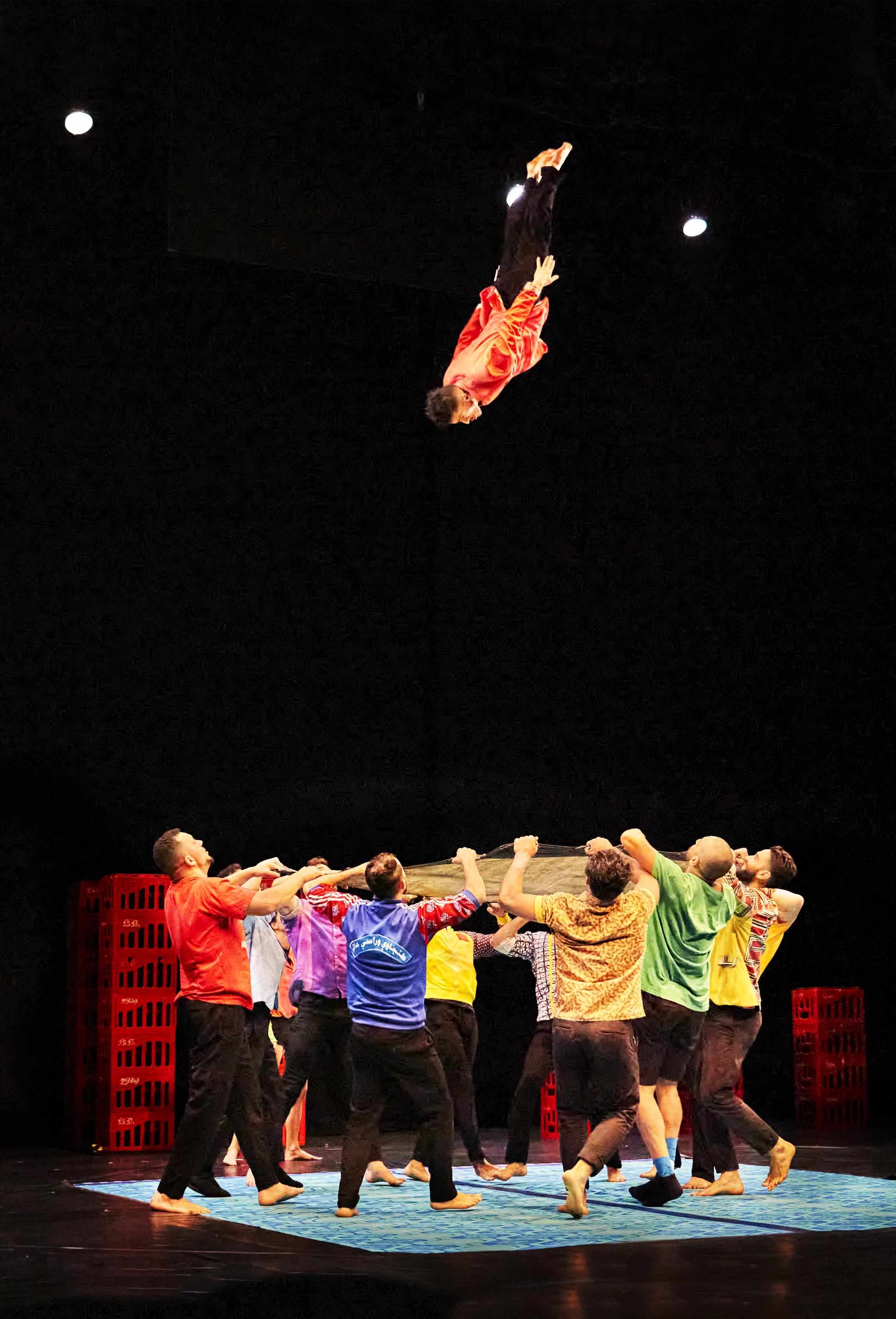 Ils sont 15 circassiens qui parlent la langue sans frontière de l’acrobatie avec une énergie phénoménale. Ils viennent de la danse, du break, ou encore du taekwondo et du footfreestyle.