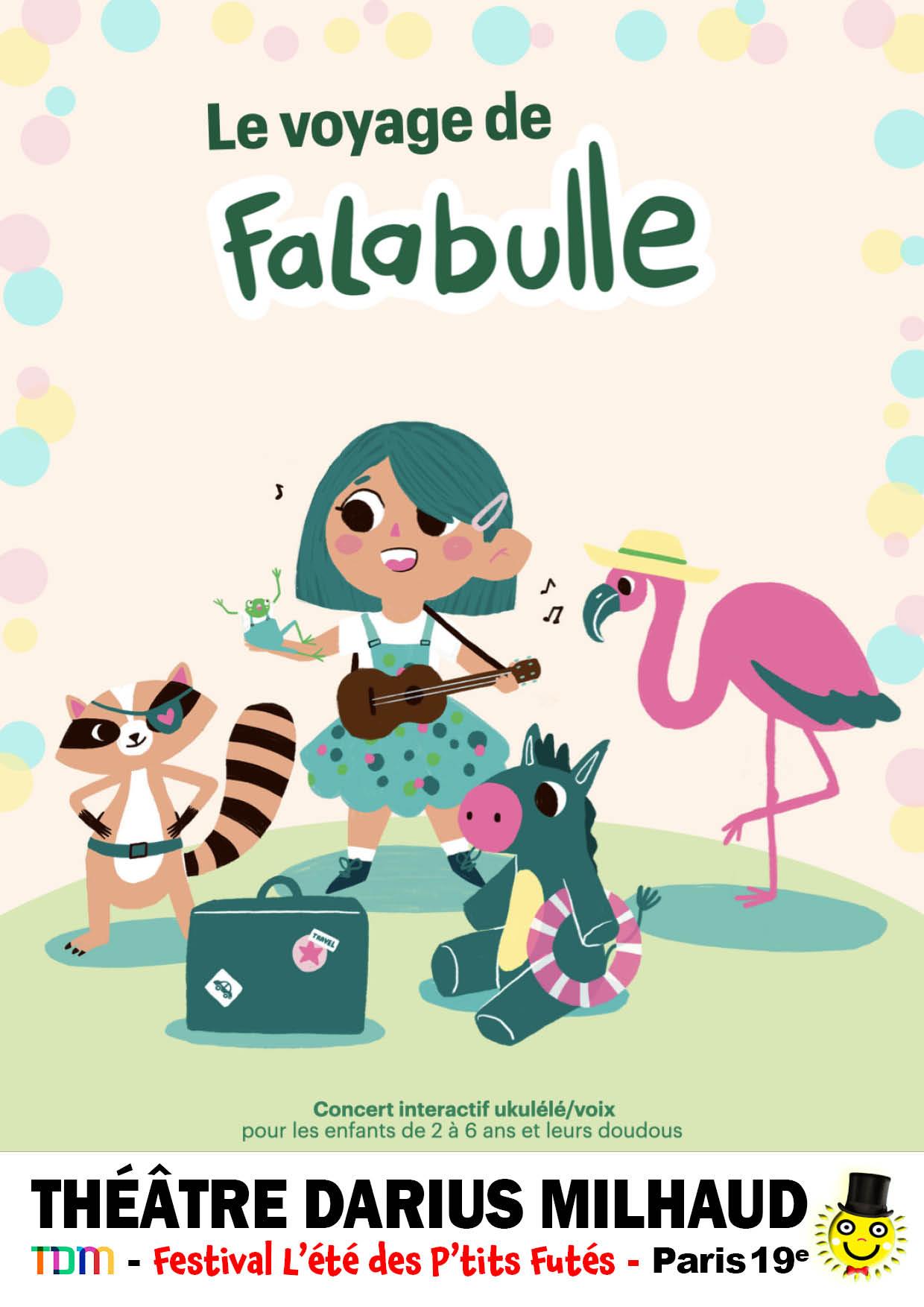 Joué par un personnage féérique et accompagné au ukulélé, Falabulle est un spectacle-concert qui met en scène des moments musicaux entrecoupés de jeux, d'histoires et d'échanges avec les enfants. De 2 à 6 ans.