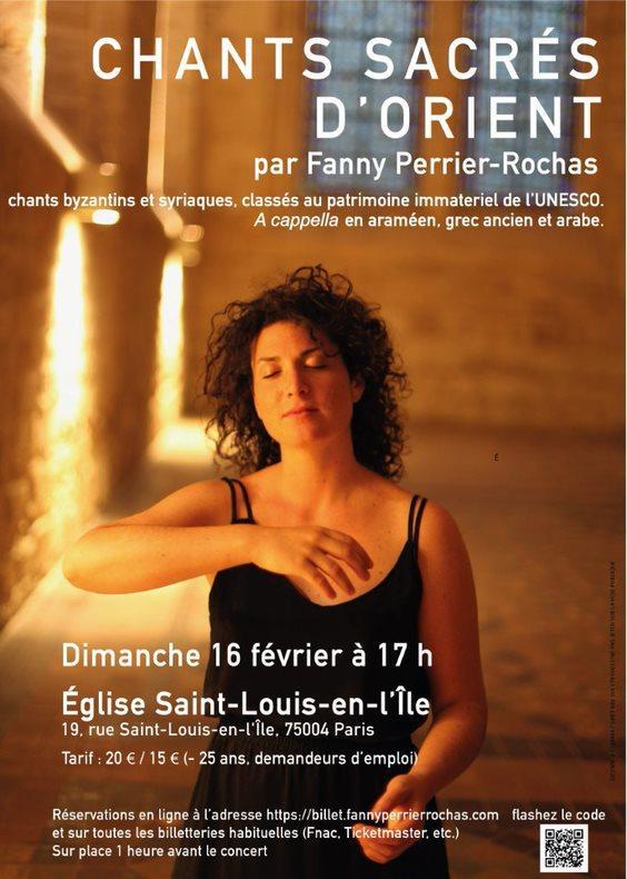 S’inspirant de la grande sobriété avec laquelle les chants syriaques et byzantins étaient interprétés dans les grottes des montagnes du Liban et sous les voûtes des églises de Constantinople et Nicée, Fanny Perrier-Rochas chante a cappella, ou accompagnée de ses instruments, pour permettre à ce répertoire de se déployer, sans amplification, dans l’acoustique naturelle des pierres.