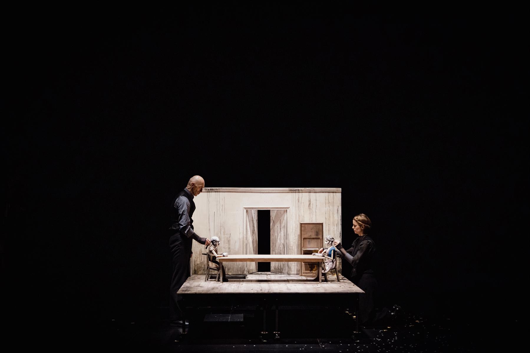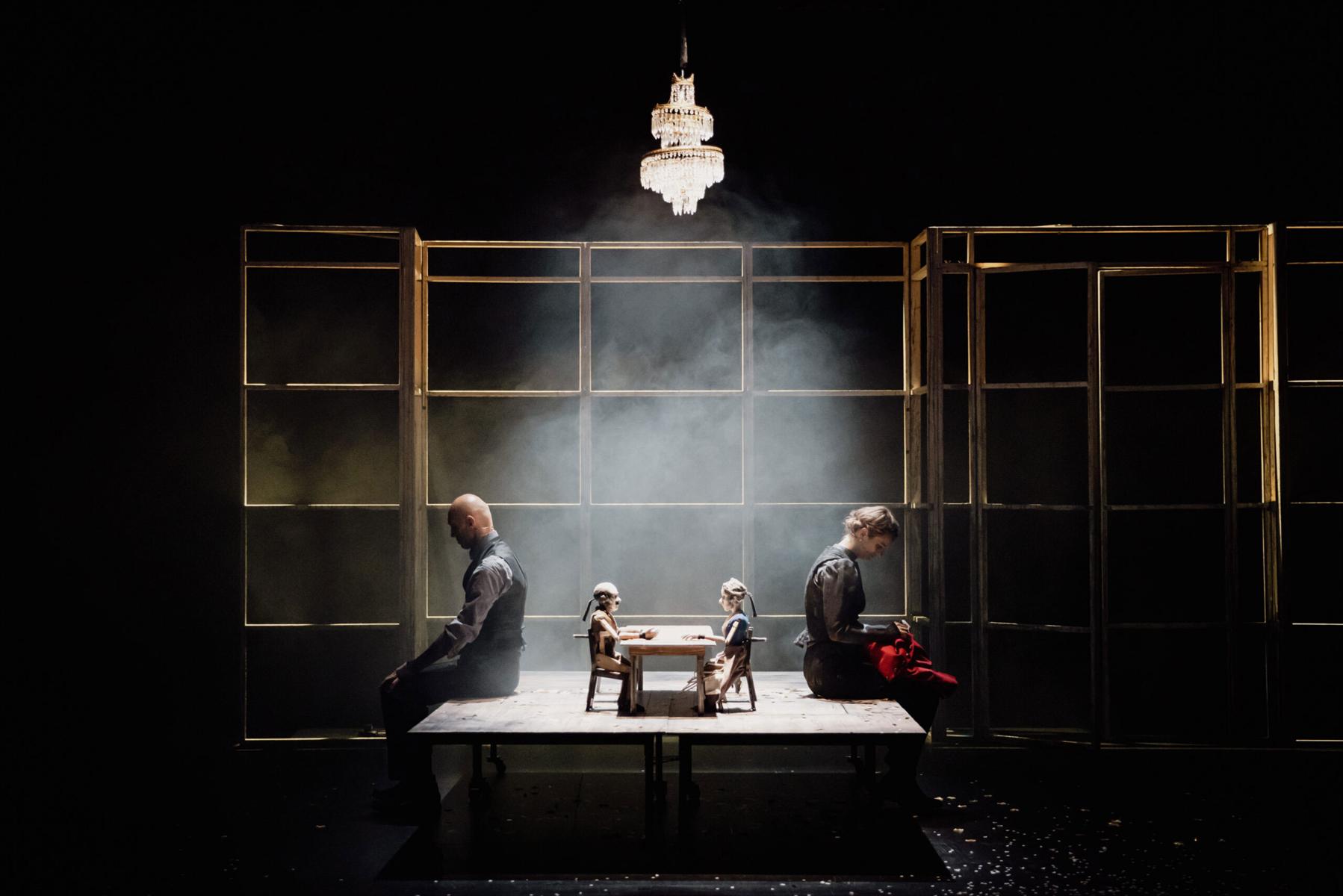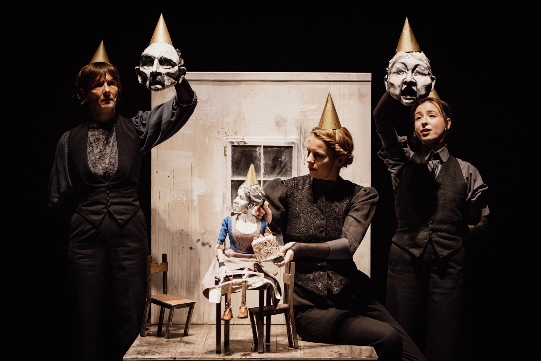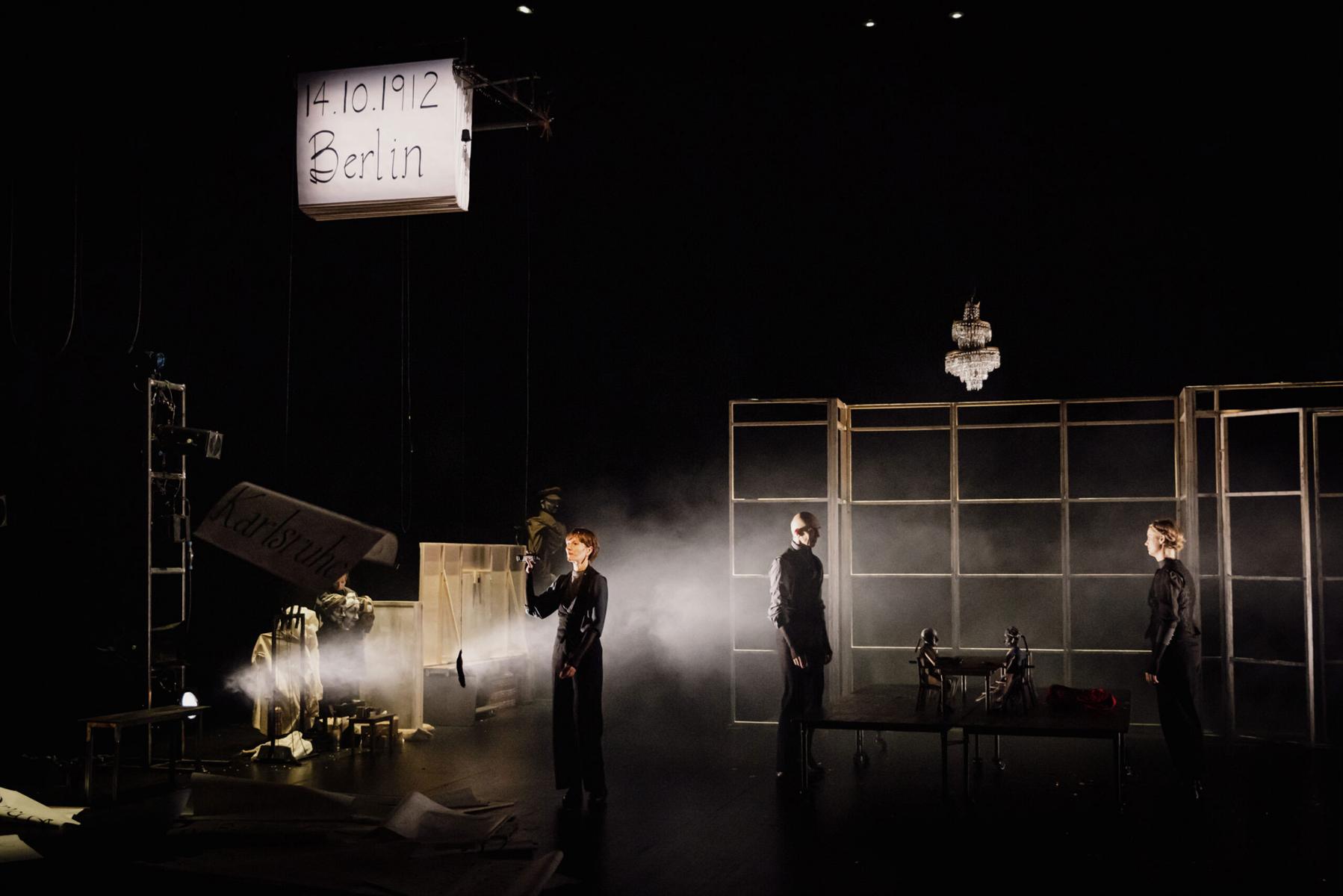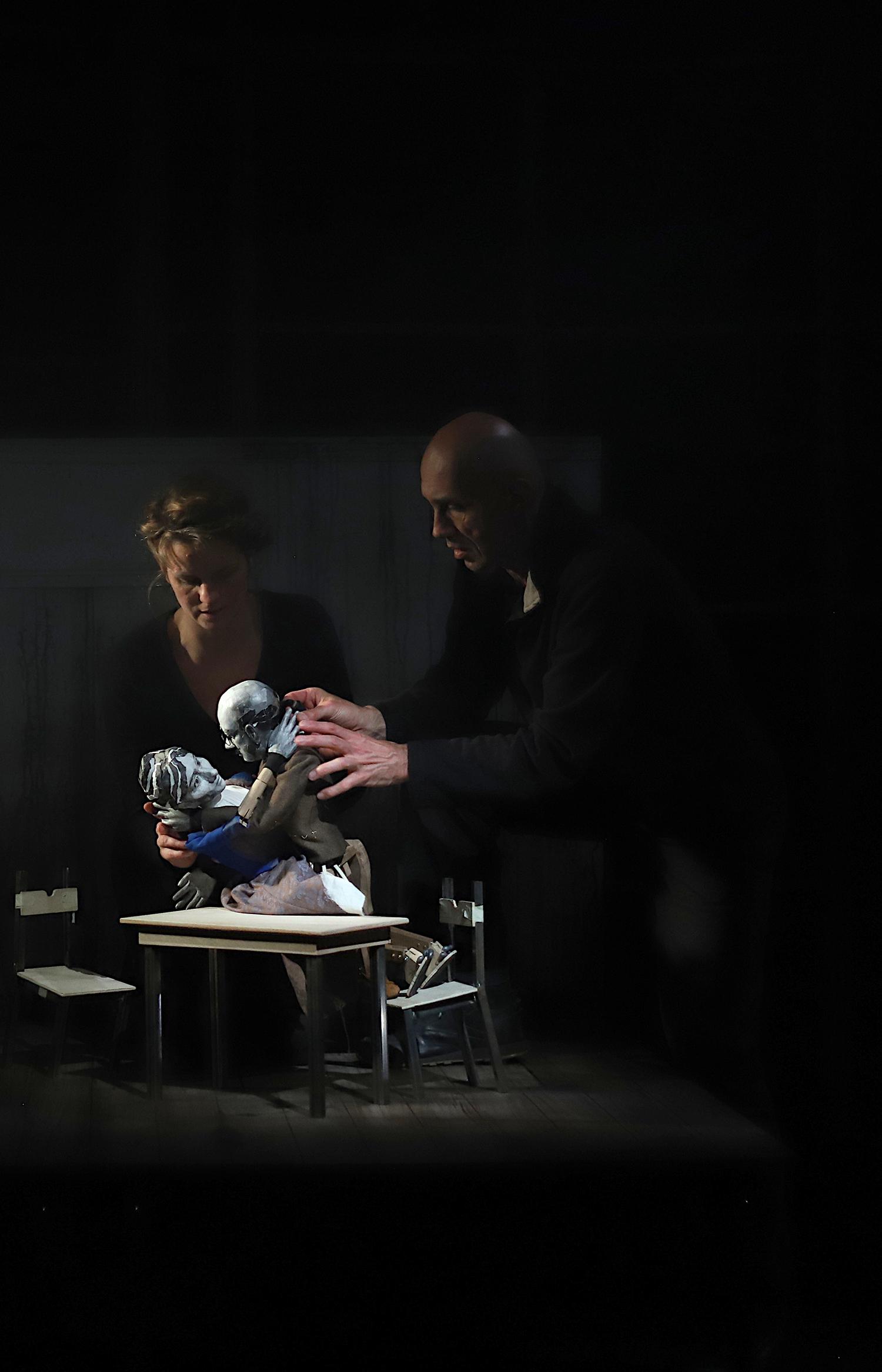 Farben (« couleurs » en allemand) se déroule dans un univers en nuances de gris à l’image d’une société étouffante sur laquelle plane l’ombre de la guerre. Comme un kaléidoscope, le récit imbrique des souvenirs de Clara et des hallucinations qui frôlent le fantastique, pour s’accélérer dans une course de plus en plus folle. Il est servi par quatre comédiens aux gestes précis, animant des marionnettes finement sculptées, et par un travail fouillé sur le son. Cécile Givernet et Vincent Munsch font monter la puissance contenue dans ce texte de l’auteur suisse Mathieu Bertholet. Une pièce qui éclaire le destin tragique de Clara Immerhwar, première docteure en physico-chimie outre-Rhin, mariée au prix Nobel Fritz Haber.