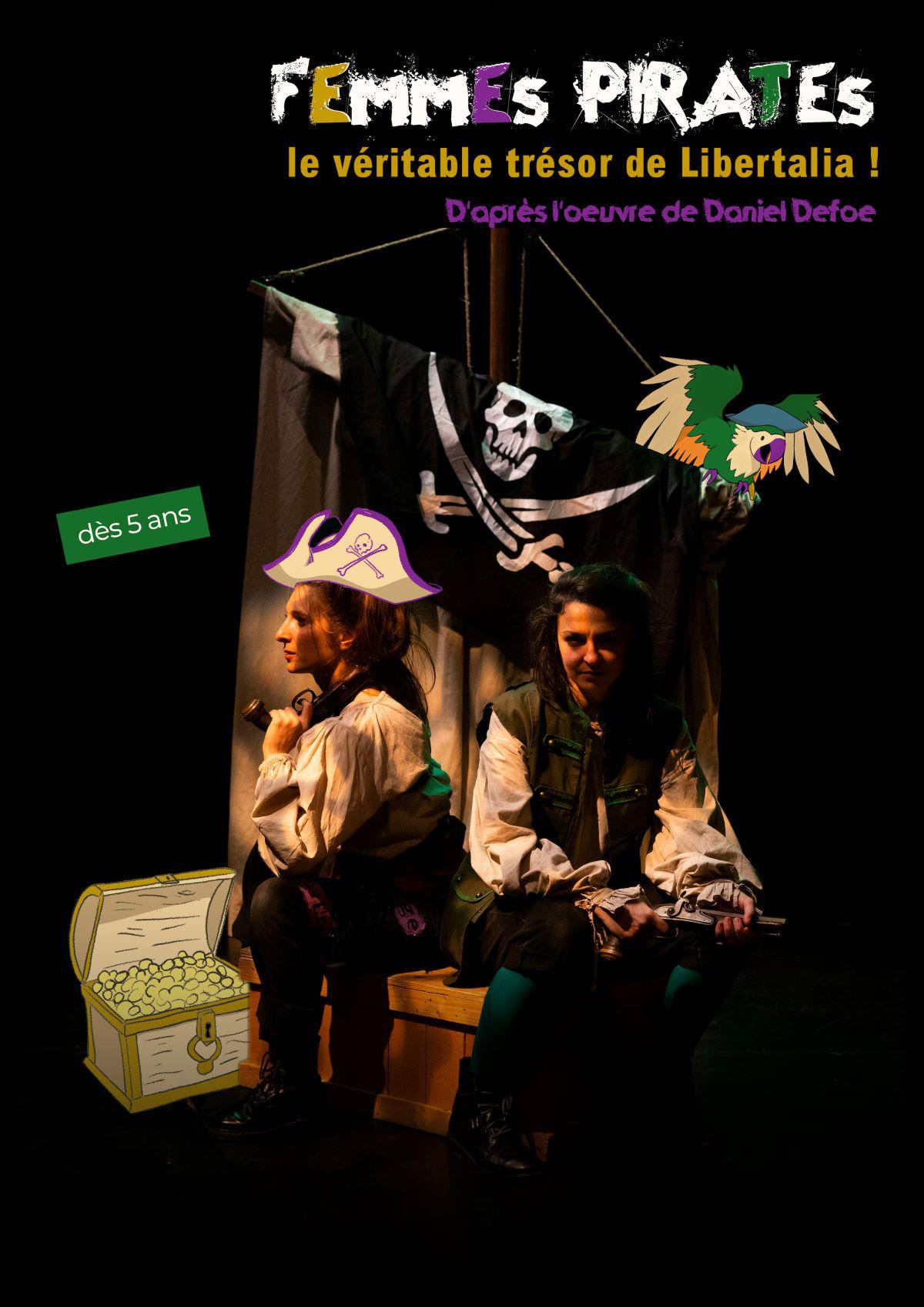 Femmes Pirates, librement adapté de l’œuvre de Daniel Defoe, voilà l’occasion de poser ces questions, à partager avec petits et grands. Quelques bouts de bois, une toile tendue, qui seront bientôt tribunal et taverne, navire, île déserte et palais royal, prison, et puis radeau… Une multitude de personnages pour l’imagination, des chants pour la navigation, quelques combats pour mériter son trésor… Pirates, oui, mais Femmes pirates, parce que l’aventure et la soif de liberté n’est pas une question de genre.