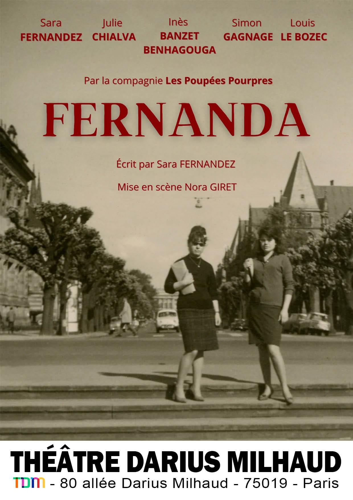 « Fernanda est une pièce qui est née à la suite de nombreuses années, assise autour d'une table, un thé à la main, écoutant le témoignage d'une vie de ma grand-mère, femme solaire, avec beaucoup d'humour, qui aime chanter et danser la vie. Conteuse sans le savoir, Fernanda est une source d'inspiration par ses récits. Impossible de les garder pour moi, il fallait que sa vie soit écrite, pour qu'à jamais son prénom et son nom résonnent. »