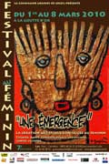 Du 1er au 8 mars 2010, j'aurai le plaisir d'assurer la direction artistique du Festival au Féminin. Cette année, le choix de la programmation s'est axé sur la découverte des compagnies et des artistes émergents du spectacle vivant. Théâtre, danse et musique feront découvrir chaque jour au public de jeunes artistes, metteurs en scène, musiciens au service de propositions scéniques inédites et exigeantes.