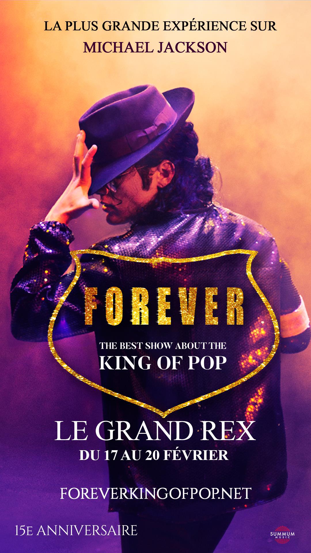 Forever célèbre ses 15 ans sur scène. Le seul spectacle au monde approuvé par trois membres de la famille Jackson. Une occasion unique de revivre la musique de Michael Jackson à travers un spectacle réunissant plus de 20 artistes sur scène.