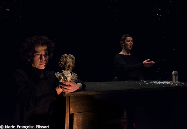 Accompagnées d’une pianiste et d’une chanteuse, les Karyatides réussissent cette fois-ci à faire vivre les figures marquantes du roman de Mary Shelley. Dans ce Frankenstein pour objets et opéra, Victor se rappelle son existence gâchée par l’ambition d’insuffler la vie à des cadavres. Sa mère chante le déchaînement du destin qui relie le créateur et la créature. Une version étonnante et hautement poétique qui garde toute sa portée fantastique et ses réflexions morale, politique et scientifique.
