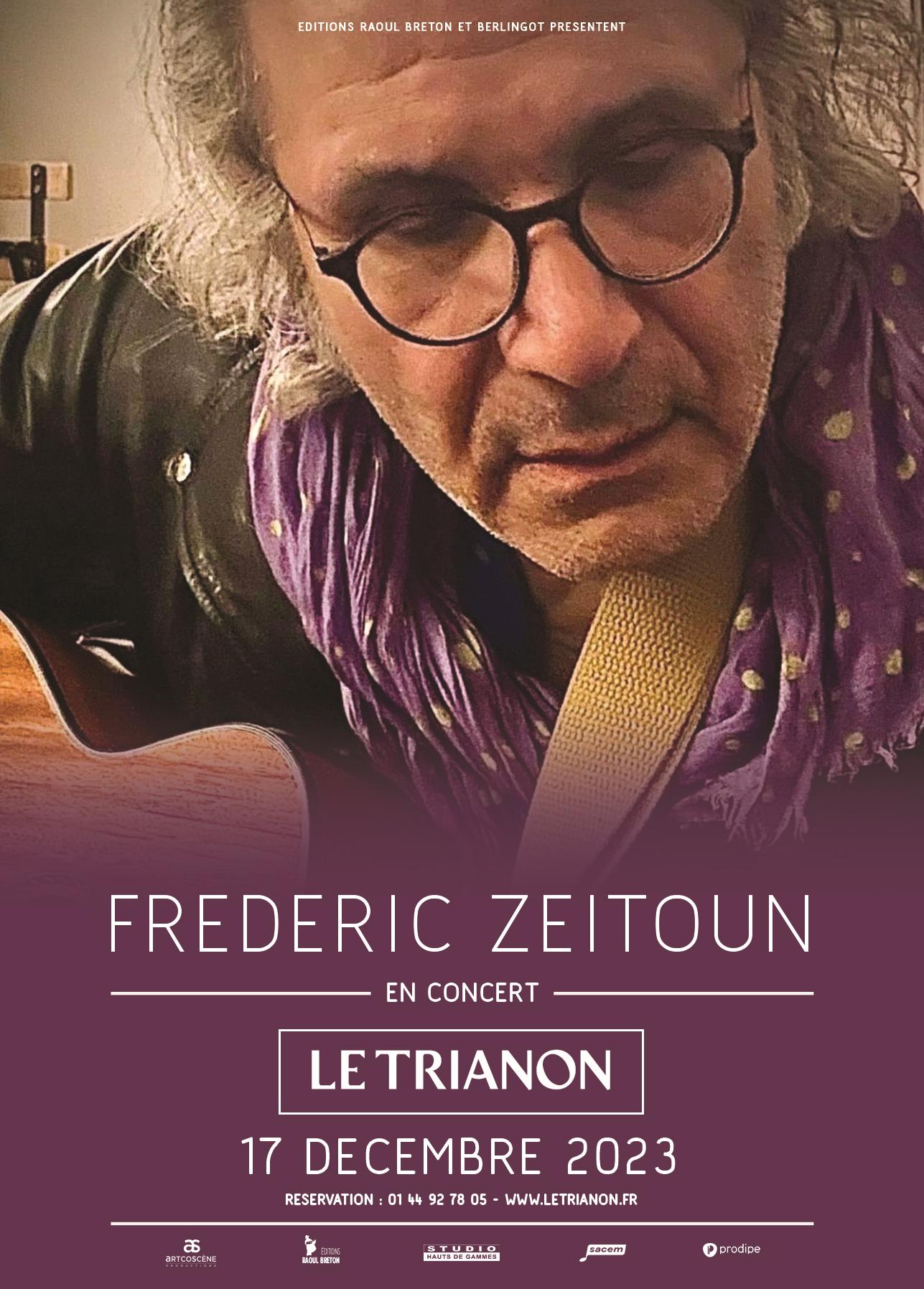 Frédéric Zeitoun est connu pour ses chroniques à la télévision. Mais c’est aussi et surtout un auteur compositeur, qui après avoir écrit pour les autres, monte sur scène pour chanter ses propres mots. Venez le découvrir avec ses amis musiciens dans ce nouvel exercice.