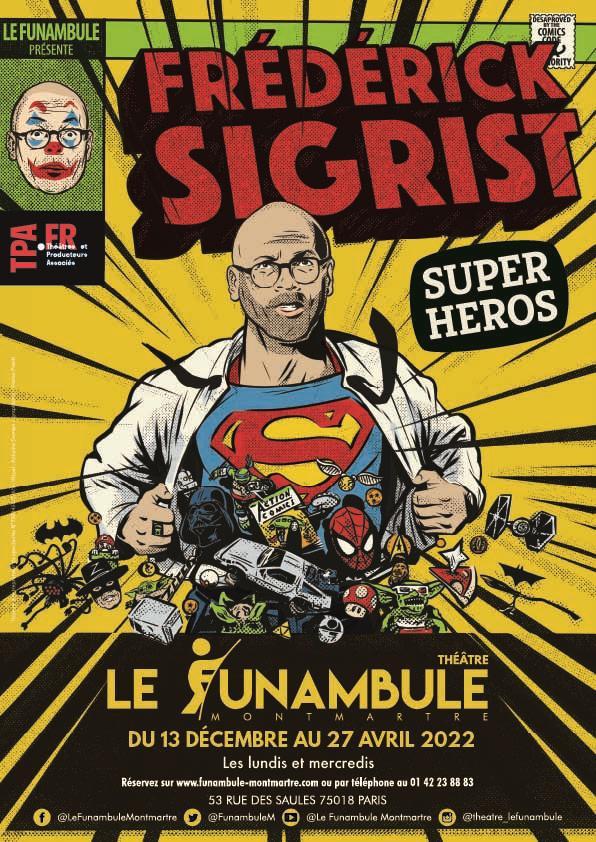 « Frédérick Sigrist, qu’on a connu très mordant sur la politique, fait un pas de côté et livre un spectacle très personnel [...] où l’on rit, certes, mais pas seulement. Et, en sortant du spectacle, on se dit que, finalement, c’est lui le super-héros. » Sorties à Paris