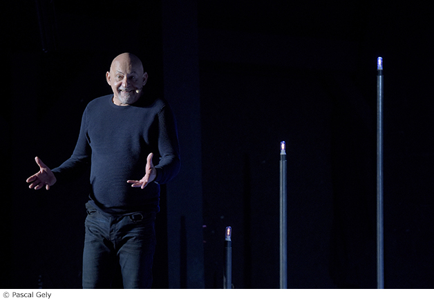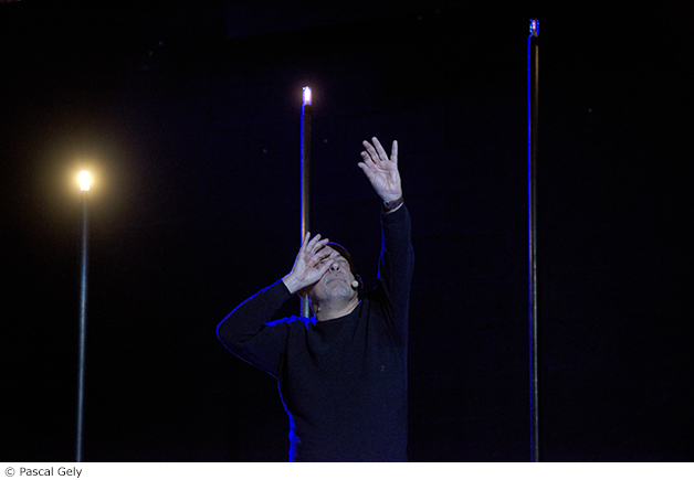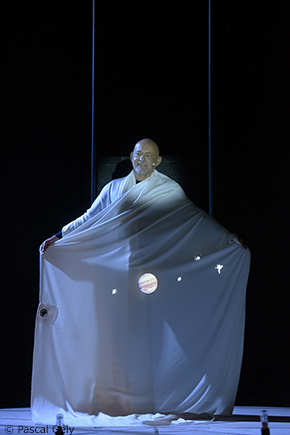 Je n’aurais jamais imaginé mettre en scène un texte de Paolini. L’écriture du chef de file du théâtre-récit en Italie est très particulière, c’est du cousu-main, du sur mesure. Paolini conçoit, écrit et met en scène ses spectacles, il n’écrit pas un texte théâtral qui sera mis en scène par un tiers à travers les siècles. C’est un acteur/auteur, qui, dans la lignée de Dario Fo, prend la liberté dans ses spectacles de nous raconter une vérité historique, politique ou scientifique par le prisme de l’anecdote et nous ouvre les portes du laboratoire de la pensée. Il nous raconte ici que les découvertes scientifiques sont un acte de création basé sur l’arbitraire du chercheur/penseur : et si Galilée ne s’était pas égaré pendant la messe en regardant le pendule, est-ce que la terre serait encore plate ?…