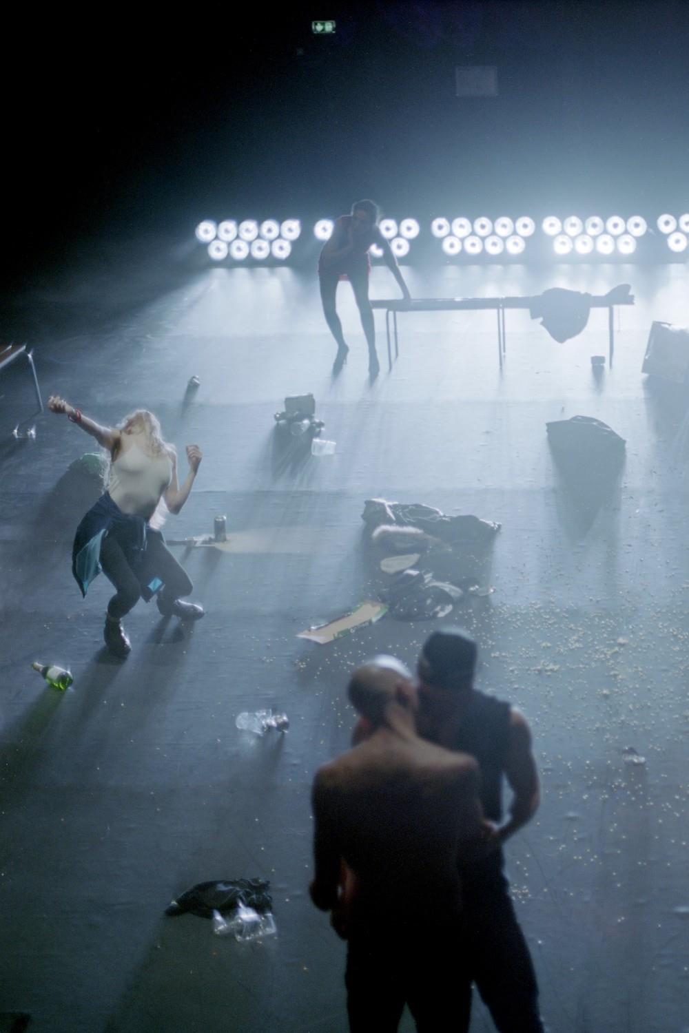 La bande son, envoûtante, embrasse l’histoire des musiques électroniques en offrant une place de choix à la techno de Detroit et au collectif Underground Resistance. Ralentis, saccades, arrêts, boucles… les mouvements des interprètes placent le public dans une puissante expérience sensorielle. Tout en laissant à chacun une part déterminante dans la manière dont il traverse la pièce, Gisèle Vienne déploie une vision de la fête comme un espace alternatif, jubilatoire et hypnotisant.