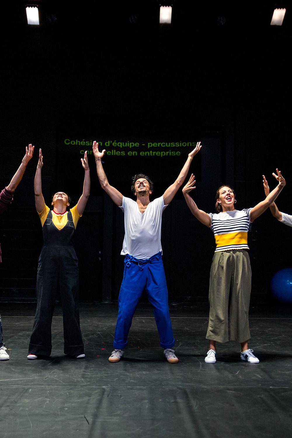 Aujourd’hui des millions de personnes partagent sur internet leur façon de chanter, de danser, de jardiner, de faire du sport, de décorer, ou bien encore de s’attaquer… aux méthodes de self-défense. Forts de leurs incroyables découvertes numériques, les performeurs mettent leurs expériences de vie et leur corps en mouvement. De cette matière virale, visiblement infinie, ils en extraient son apparente vacuité au nom du bien être absolu si propre à notre époque, et en font ressortir une succession de numéros joués et dansés; une sorte d’élan vital dans le but de progresser, voire de « tenir le coup» seul ou en groupe… Comme une exubérante métaphore de survie.