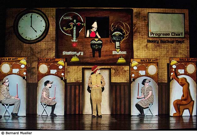 Le Golem… Créature fantasmatique, informe et multiforme, fabriquée par l’Homme à son image, et qui se métamorphose en figure d’épouvante. Née dans la Bible, cette créature indocile s’est introduite dans la littérature de tous les temps, puis dans le cinéma, notamment expressionniste. Mais pour la Compagnie 1927, le personnage de légende demeure juste un point de départ pour une histoire d’aujourd’hui qui, avant tout, traite des relations entre un homme et sa création, son Golem. Son double virtuel, qui échappe à tout contrôle.