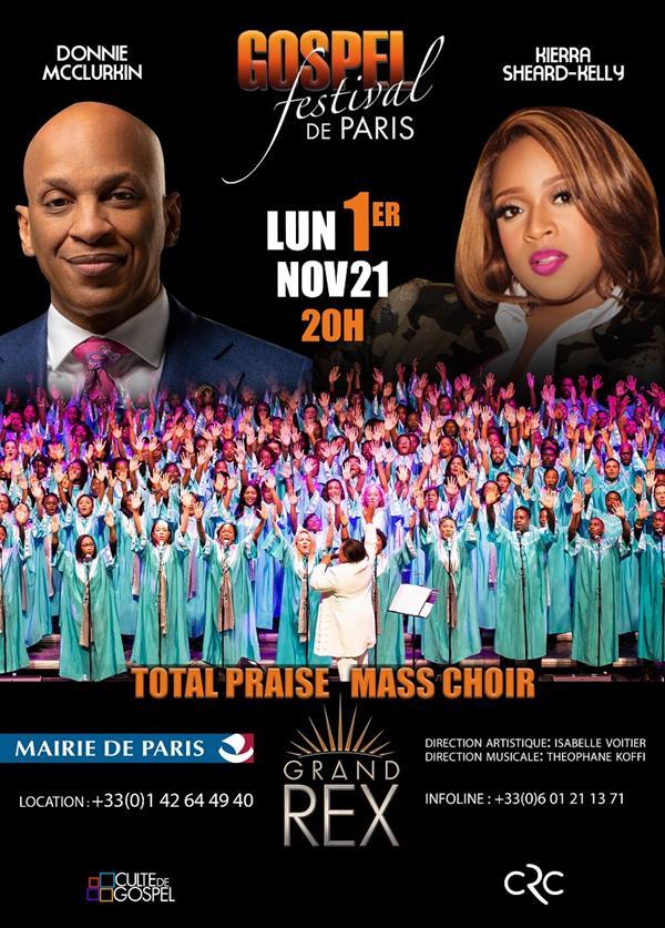Comme à son habitude, le Gospel Festival de Paris nous présente la plus belle combinaison du gospel contemporain international. Une 18ème Édition qui promet d’être époustouflante avec Donnie McClurkin et Kierra Sheard-Kelly, deux géants du genre, et une chorale qui n’est plus à présenter dans l’hexagone et à l’international, Total Praise Mass Choir.
