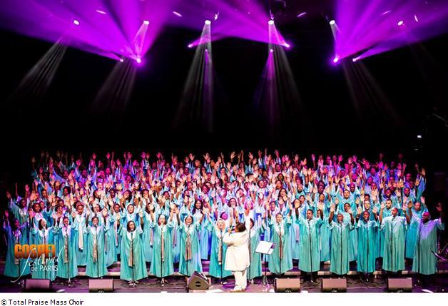 TOTAL PRAISE MASS CHOIR, la plus importante formation gospel en France pouvant atteindre jusqu’à 250 choristes et musiciens, allie efficacement harmonie, puissance et spiritualité. Total Praise Mass Choir sur scène, ce sont des sensations fortes garanties à chacun de ses rendez-vous avec le public, tant cette chorale est en recherche constante d’authenticité et d’excellence.