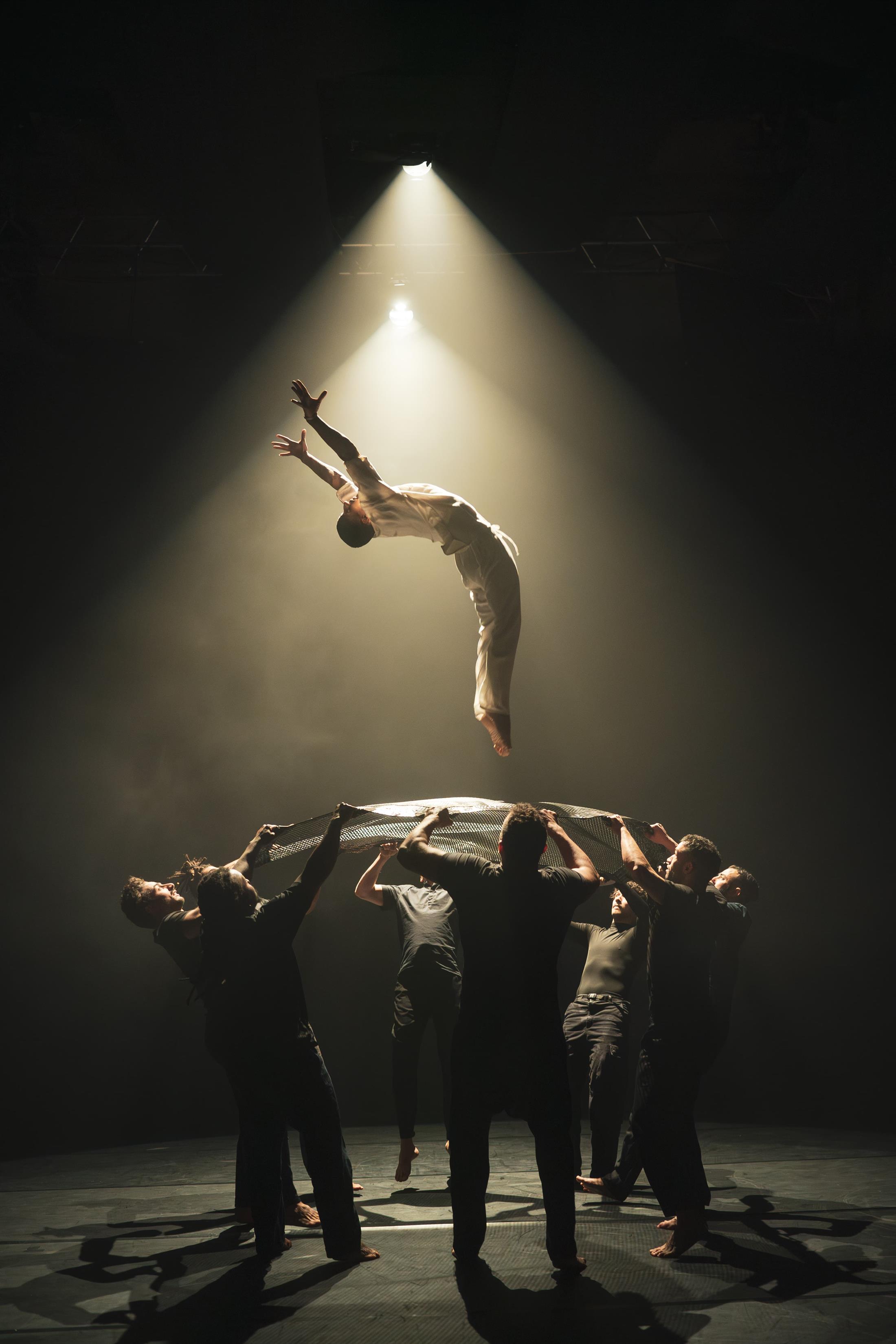 À l’aide d’un vocabulaire physique puissant, les interprètes nous embarquent dans une épopée circassienne spectaculaire. Sur le plateau, les mouvements collectifs et individuels questionnent l’identité et le courage, le lâcher prise ou l’affirmation du vivant.