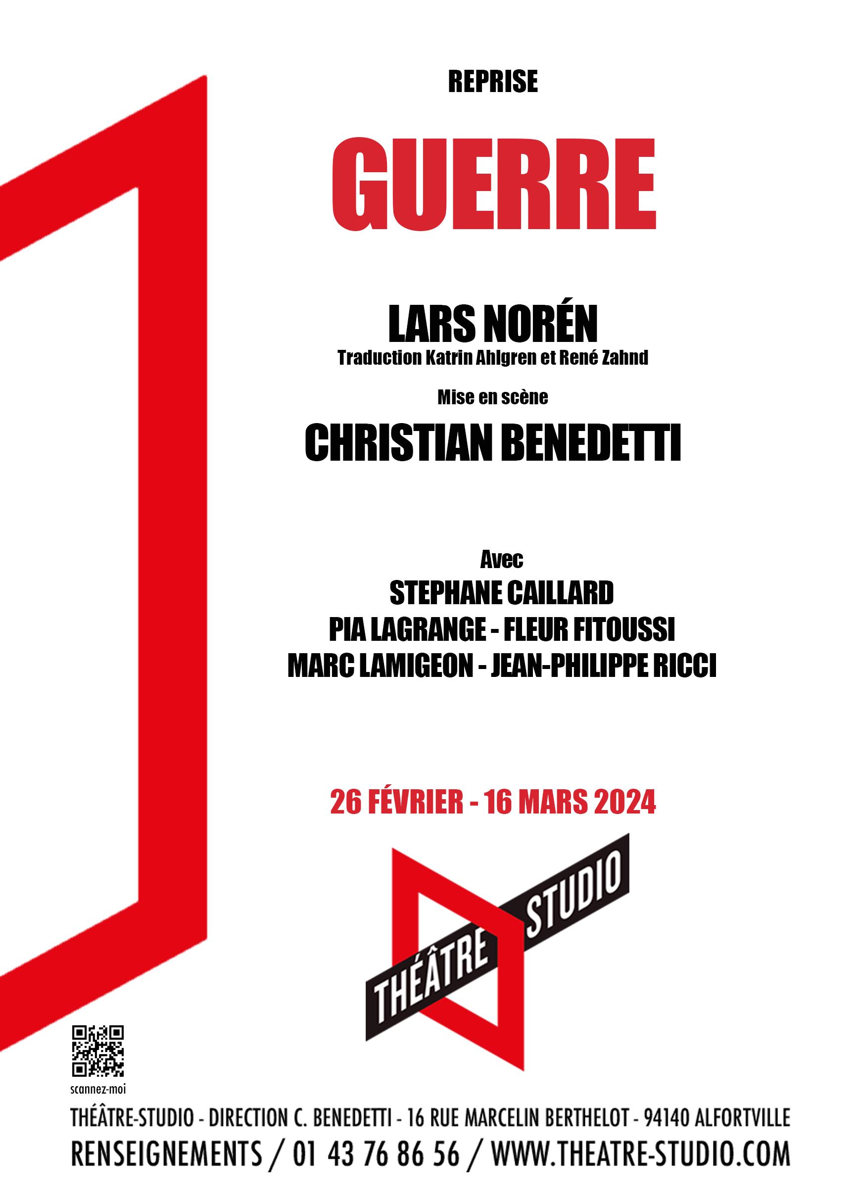 Lars Göran Ingemar Norén est un poète, metteur en scène, dramaturge et auteur suédois né le 9 avril 1944 à Stockholm en Suède et mort le 26 janvier 2021 dans la même ville. Il crée Guerre (Krig) en 2003.
