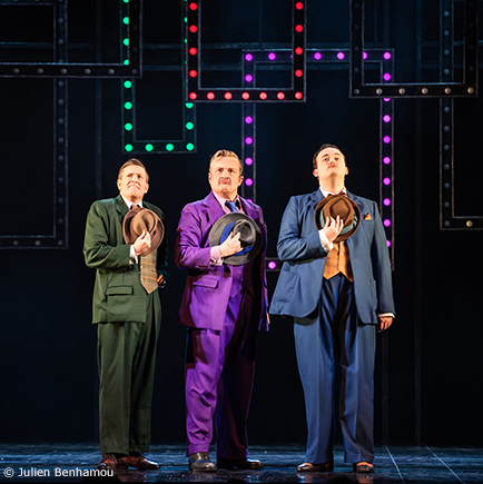 Jean-Luc Choplin a choisi de présenter pour la première fois en France une nouvelle production de Guys and Dolls qu'il a confiée à Stephen Mear (metteur en scène de 42nd Street et chorégraphe de Singin' in the Rain au Théâtre du Châtelet). Ce chef-d'oeuvre de la comédie musicale américaine est l'occasion de retrouver Ria Jones (42nd Street), Clare Halse (Singin’ in the Rain), Christopher Howell et Matthew Goodgame entourés d'un ensemble de 16 comédiens-chanteurs-danseurs exceptionnels, tous accompagnés d'un orchestre live.