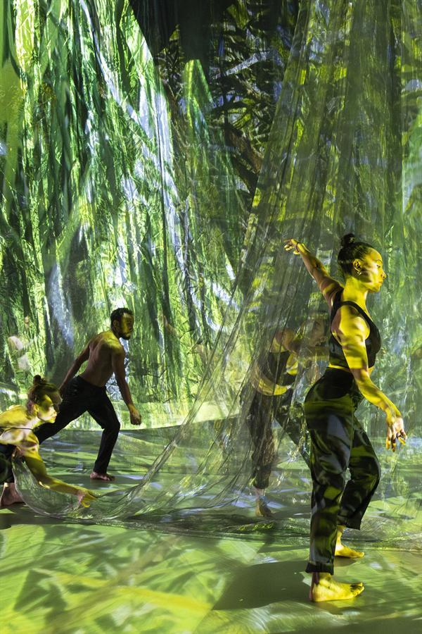 Le titre - en créole - de leur création rend directement hommage à celui qui prôna le métissage des arts et des langages au nom d’une « poétique de la Relation », Edouard Glissant. Jouant sur les complémentarités comme sur les entrechoquements, les danseurs composent un groupe aux singularités entremêlées. À leurs ensembles et leurs échappées répond la musique entre jazz et blues, en partie improvisée, du saxophoniste Raphaël Imbert. De grands voiles translucides projettent des images vidéo de paysages évoquant la luxuriance tropicale. Embarquement pour le Tout- monde…