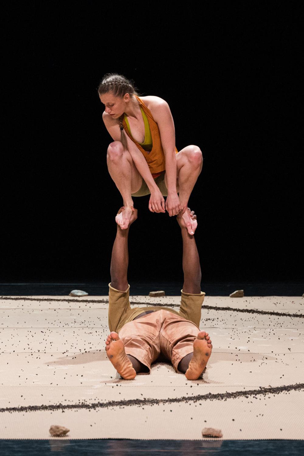 Aux envolées de Hêtre, corps à corps entre une acrobate et une branche en suspension, répondent les métamorphoses ancrées au sol du duo de Phasmes. Les deux pièces mettent en jeu le corps civilisé et le corps matière, malléable et transformable. Tour à tour humains, arbres ou insectes de ces forêts imaginaires, les interprètes restituent un monde de sensations et de rencontres improbables pleines de grâce. Un diptyque au croisement de la danse et du cirque sur le lien entre l’humain et la nature.