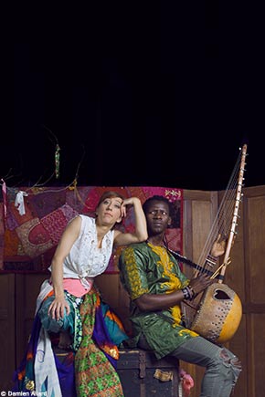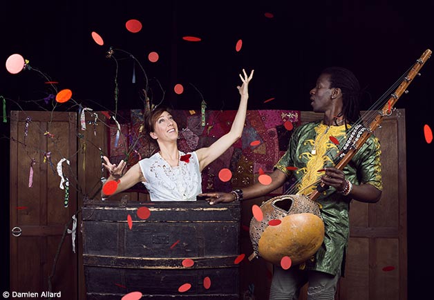Un voyage poétique au son du Kamalé Ngoni, le luth des griots Bambaras. Pantomime, art du geste et manipulation d’objets se lient au récit, dans un dialogue malicieux entre une comédienne et un musicien.