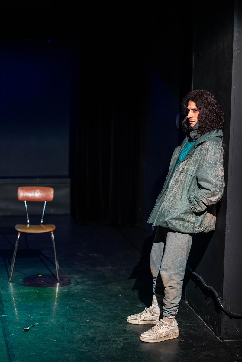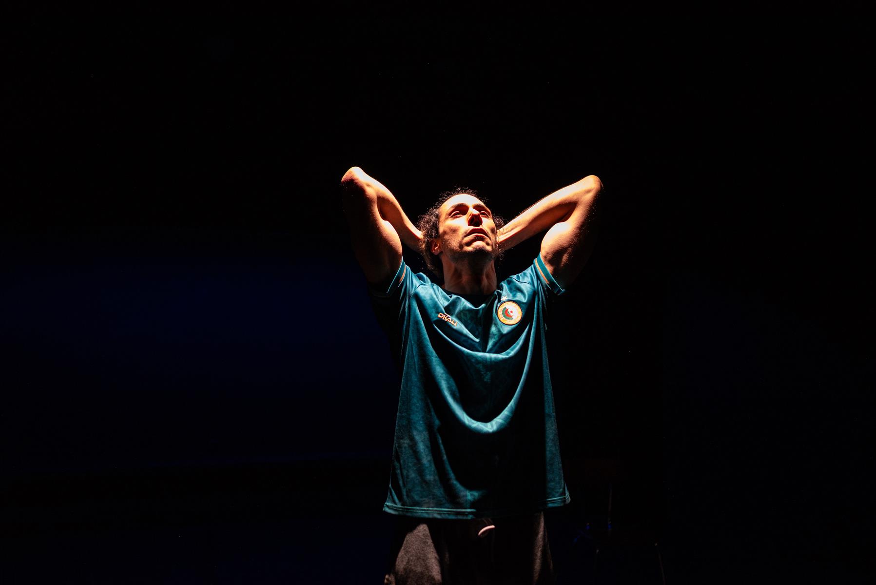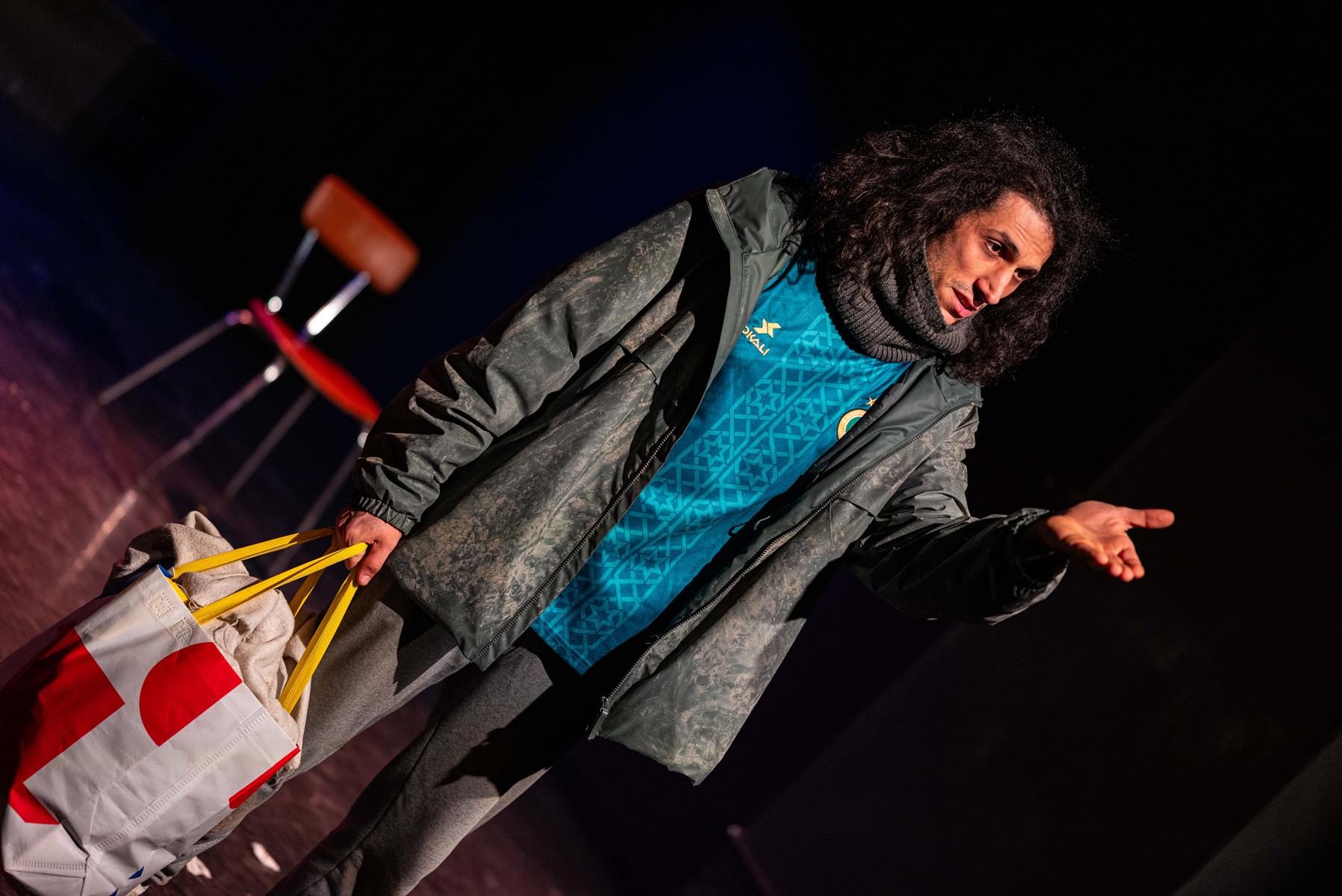 Homère kebab est le monologue d’un migrant à Calais. Rida, c’est Ulysse, comme tous les migrants le sont en puissance. Homère, c’est le kébabier, un marchand à qui le héros parle, tout comme on peut imaginer Ulysse parler à l’aède. Le spectacle oscille entre un temps mythique et notre contemporanéité. L’espace du plateau sera rendu à une épure : un tabouret, des néons, un sac Lidl. Les éclairages et le son feront figurer le personnage tour à tour en Algérie, à Calais, sur une zone de fret éclairée aux néons, dans le kebab… Melki Izzouzi incarnera ce héros au destin épique. Rida est candidat à l’exil comme Antigone à sa propre mort. Rida a enfreint les lois de la cité. C’est un ancien footballeur algérien. Il était avant-centre dans l’équipe des Fennecs. La tragédie de sa situation est démentie par son humour et son optimisme (rien n’est plus dérisoire que le tragique). Homère kebab n’est pas une pièce politique. C’est un conte philosophique, qui parle d’un homme pris dans les affres d’une histoire qui le dépasse. C’est une réflexion sur la condition humaine, sans militantisme, sans manichéisme, sans pathos. À travers le regard de Rida, se pose la question de l’exténuation de la sensibilité et de l’empathie dans l’Occident contemporain. Qui regardons-nous quand nous voyons les migrants dans notre écran de télévision ? Comment tendre la main, le cœur sec ?