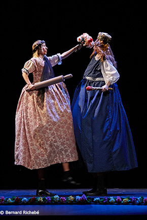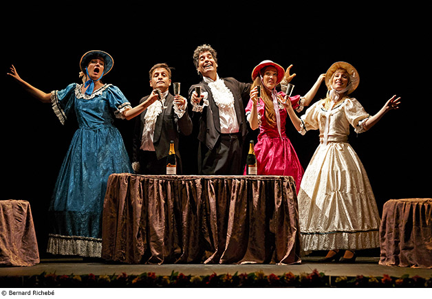 Sur scène, les gags visuels fusent. Les cinq acteurs se mettent en quatre pour composer la centaine de personnages d’un show sans paroles, véritable cascade de sketchs-tableaux plus fous les uns que les autres. Hop !éra est une expérience unique, un spectacle iconoclaste qui fera autant rire les mélomanes que les néophytes, montrant à chacun le champ infini d’émotions que peut offrir le lyrique. Une vision iconoclaste et dépoussiérée de l’opéra, à la bonne humeur contagieuse ! Irrésistible !