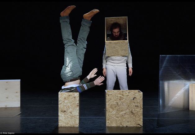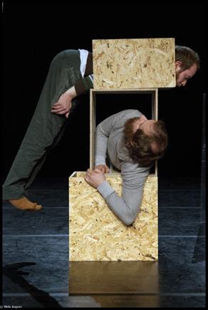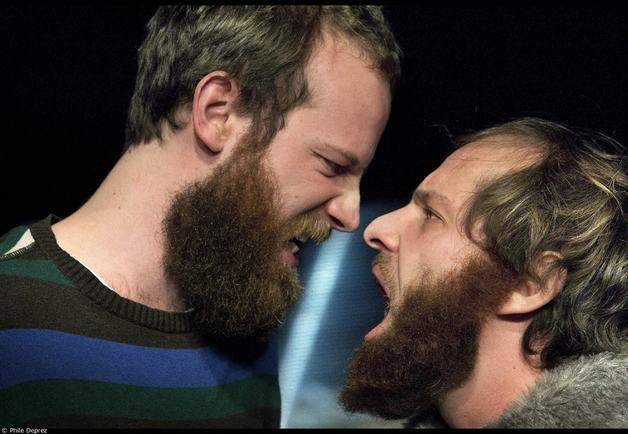C’est un duo et un duel, un pas de deux construit autour de la compétition cruelle et de l’émulation étonnée et féconde, une figure dansée et chantée. Jakob et Pieter Ampe, frères à la ville, musicien et professeur de voix pour l’un, danseur et chorégraphe pour l’autre, s’observent, se cherchent, se heurtent, s’épuisent dans de véritables jeux de (dé)construction et de course poursuite.