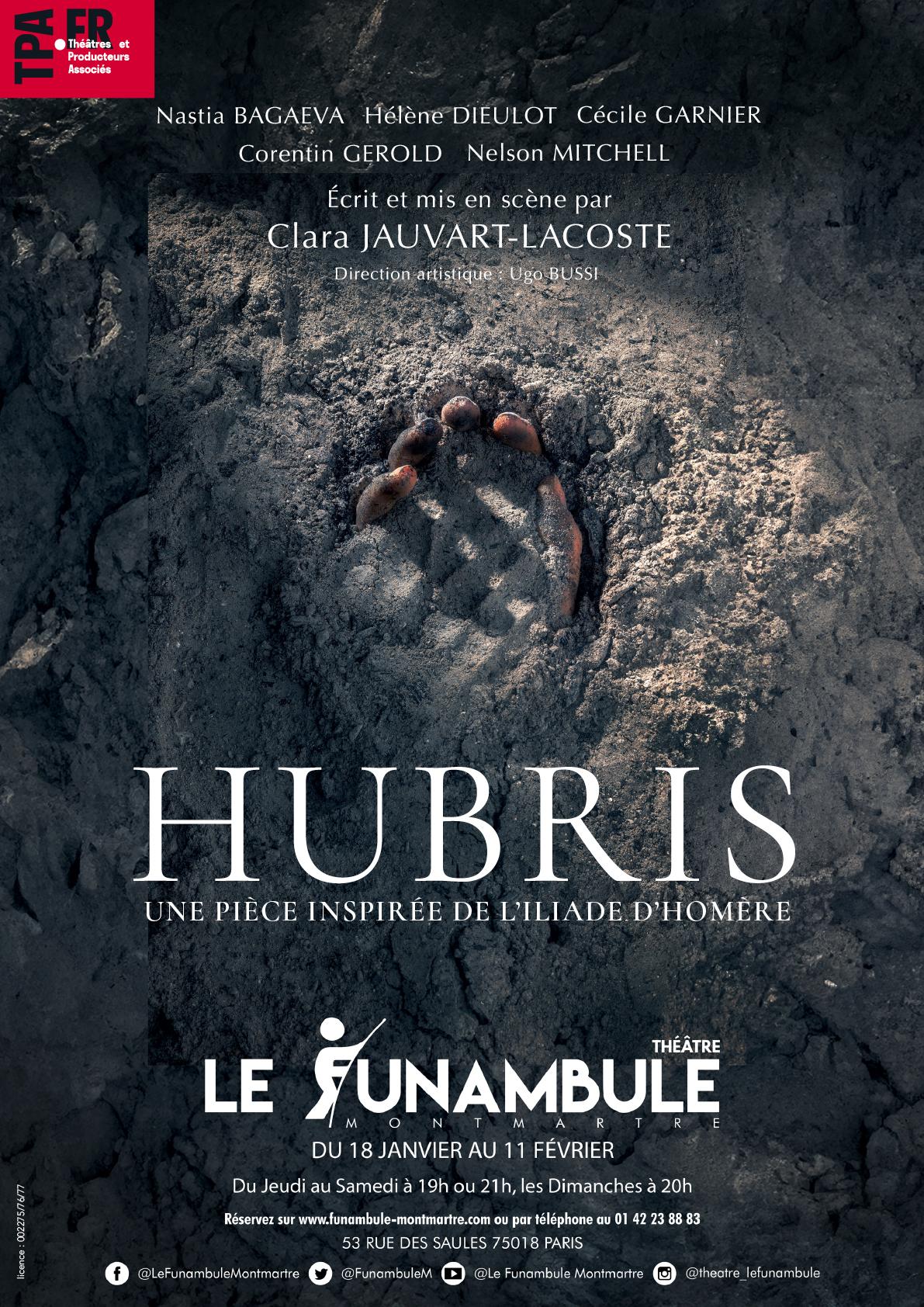 La représentation théâtrale de HUBRIS, de la bande son aux effets de lumière, nous transporte dans une atmosphère atypique et antagoniste entre lumière et ténèbres, amour et haine, ignominie et gloire, violence et douceur. Cette jeune autrice/metteuse en scène/comédienne, récemment sortie des cours Florent, a déjà réussi l'exploit de monter cette pièce et a su avec habileté réunir une équipe de jeunes artistes (très) talentueux pour nous transcender l'espace d'un instant, au cours de l'histoire des héros méconnus et persécutés de l'Iliade. C'est une franche réussite. Une interprétation frappante et quasi dramatique des choix irréductiblement tragiques auxquels ont dû faire face les héroïnes de la guerre de Troie, d'une durée de 80 minutes aux termes de laquelle on en réclame encore. Nous y retournerons pour voir évoluer cette troupe et suivre de près cette autrice qui, nous n'en doutons pas, devrait nous réserver de belles surprises dans l'avenir du Théâtre.