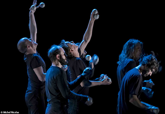 Tout ce qu’on peut faire avec 5 balles, deux mains, deux bras, la tête parfois... Une chorégraphie superbe qui anime sept corps en un humanoptere qui parle avec des balles. Quelques longueurs mais je n’ai jamais rien vu de pareil !