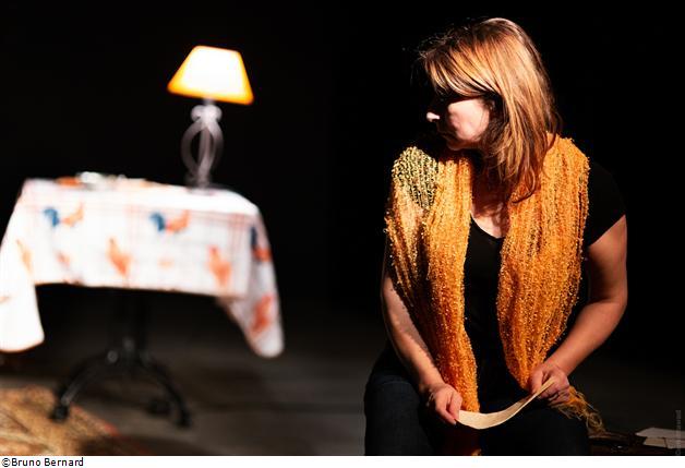 belle mise en scène , une actrice seule dans un espace évoquant déménagement et déracinement...une voix off et parfois un fonds musical une actrice qui se donne pleinement.