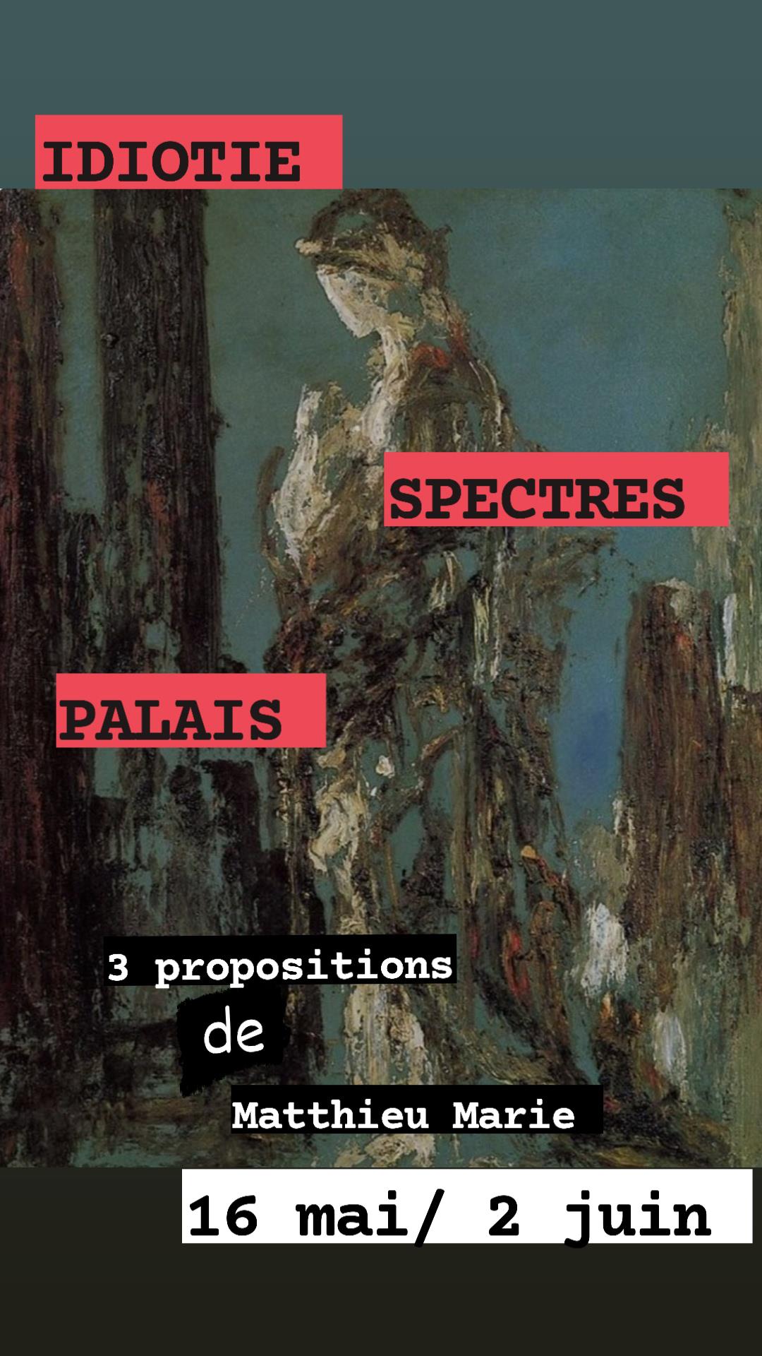 3 propositions, 3 esquisses dessinées : Idiotie de Pierre Guyotat, Spectres d'après Charlotte Delbo, Palais ( poèmes, chansons, paroles perdues...) de Rilke, Hölderlin, Pessoa, Woolf, Gertrud Kolmar, Constantin Cavafy, Ilarie Voronka, Henri Michaux, Jean Racine...