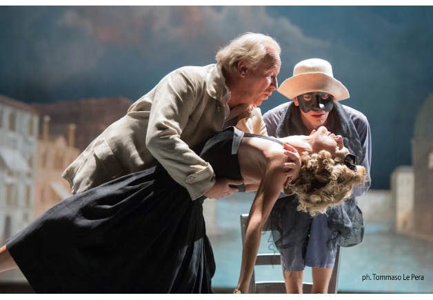 La mise en scène est signée par Alfredo Arias, auteur de spectacles brillants, animés par une ironie tantôt tendre, tantôt folle, qui s’accorde parfaitement à l’esprit enjoué de ce texte Goldonien. Geppy Gleijeses, celebre attore italiano, incarne Lelio Il Bugiardo. Accompagné par Marianella BarGilli dans le rôle de Rosaura et par anDrea GiorDana, dans le personnage de son père, un Pantalon drôle, attachant et qui sous son masque moralisant cache une folie qui fait de son fils son digne héritier. Chloé Obolensky, qui a collaboré notamment avec Peter Brook et Deborah Warner, à conçu des décors et des costumes poétiques qui recréent avec grâce et fragilité une Venise en train de s’effacer.
