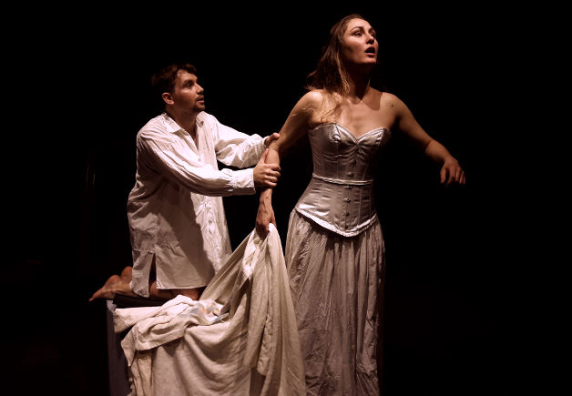 Ecrire une suite à la pièce de Musset pour révéler ce qui se passe derrière la porte, une fois fermée. Regarder par le trou de la serrure et dévoiler les non-dits, les véritables intentions des deux personnages. Gratter le vernis. On les retrouve après leur mariage mais à notre époque. Ils sont les mêmes, mais transportés dans notre siècle. Forcés de porter un regard lucide sur leurs actes et leurs motivations. L’heure de la déclaration amoureuse est terminée, on glisse de la légèreté à la cruauté, le jeu est devenu dangereux.