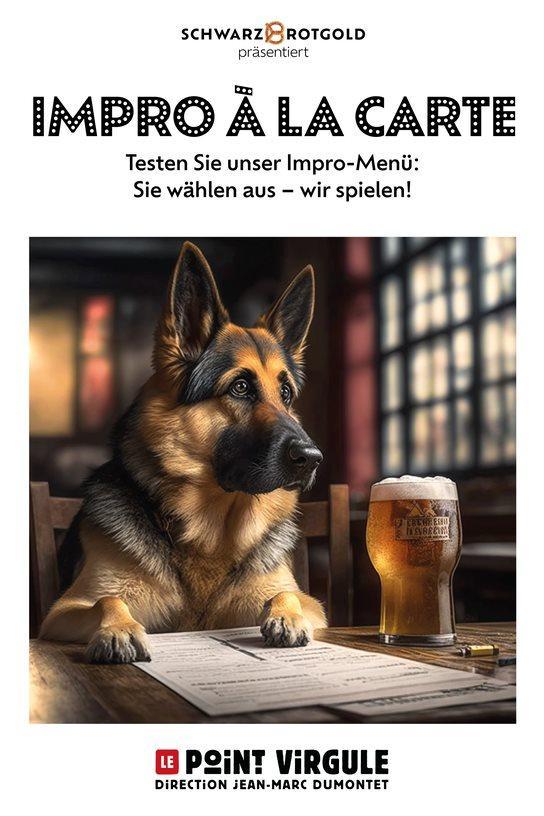 Die neue Show von Schwarzbrotgold : Impro à la carte. Testen Sie unser Impro-Menü : Sie wählen aus – wir spielen! 60 Minuten gepfeffertes Improtheater vom Feinsten. Spectacle en allemand.