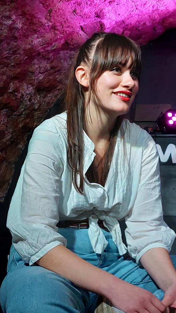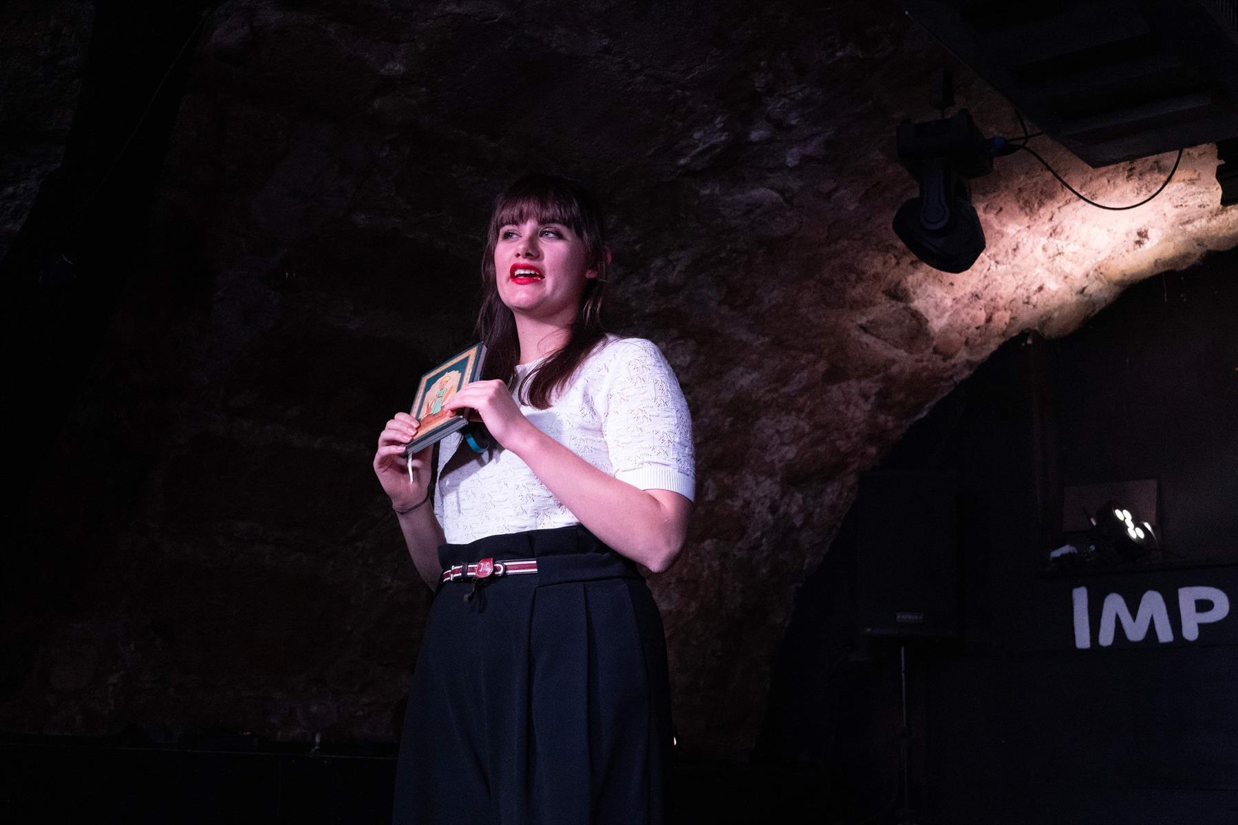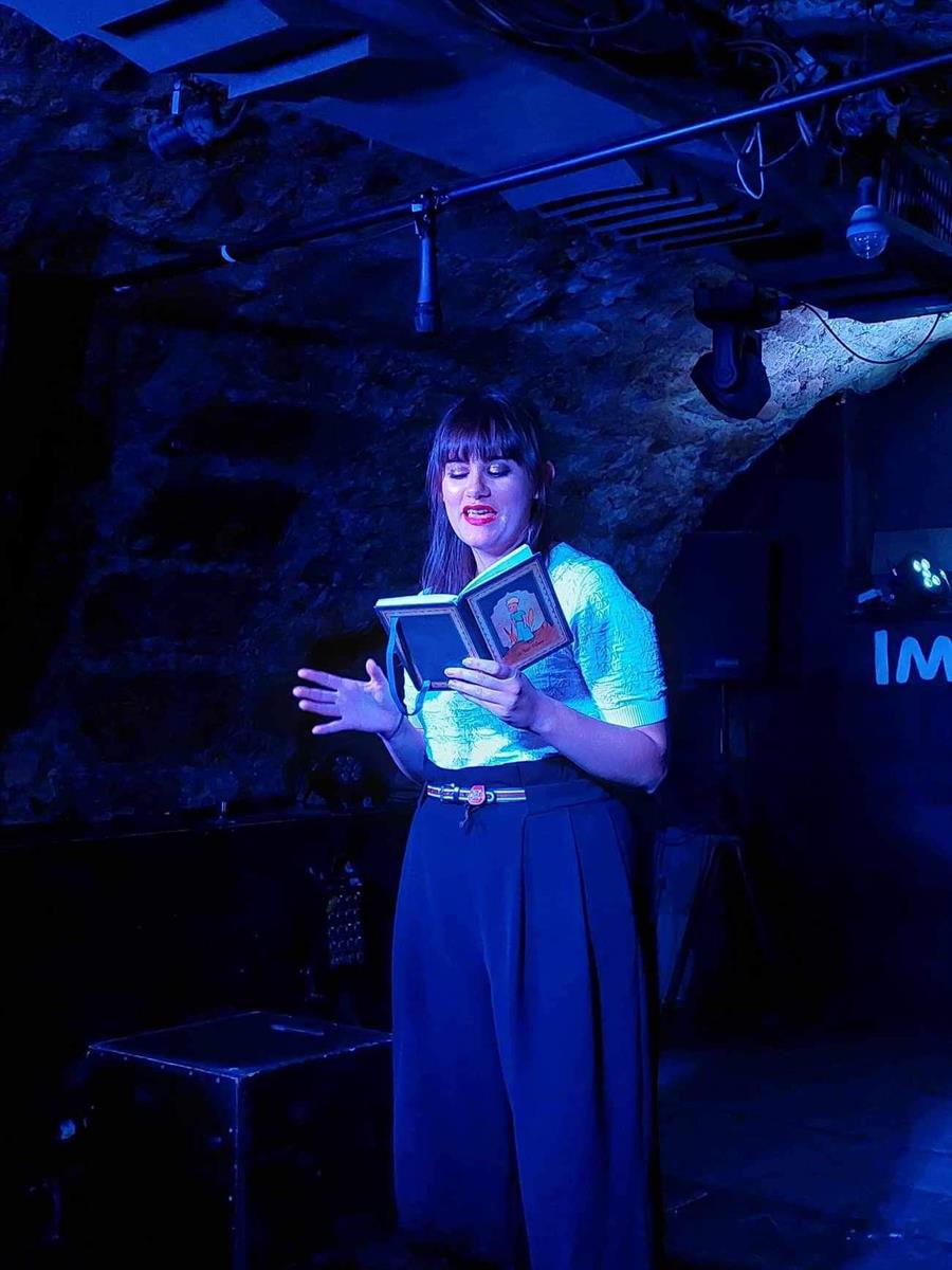 Depuis 2020, Victoire note dans un carnet toutes les phrases qu’elle trouve poétiques. Un spectateur en choisit une, des mots sont demandés à la volée puis l’improvisation commence.